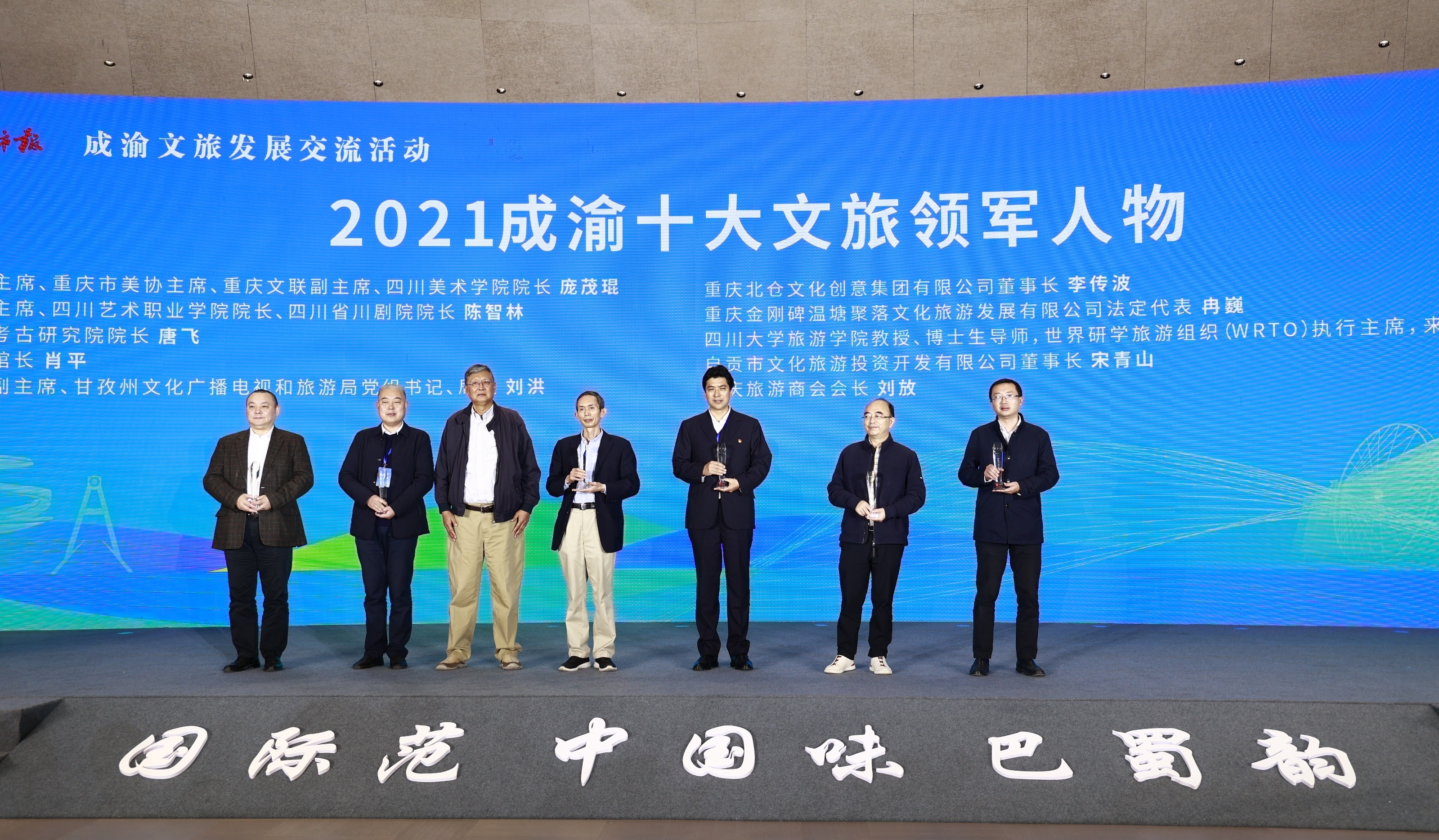 刘洪(左五)荣获“成渝十大文旅领军人物”。