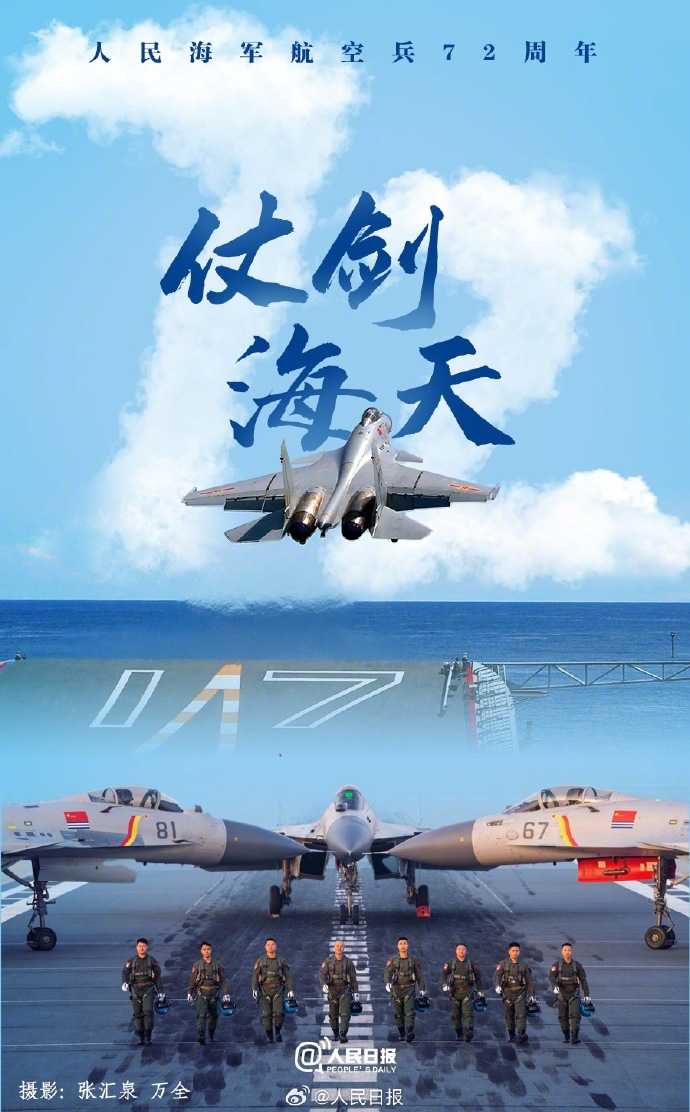 1952年的今天,人民海军航空兵第一师成立。72年来,人民海军航空兵从无到有,从小到大,从弱到强,逐步发展成为海军的一支现代化高技术兵种。今天,人民海军航空兵成立72周年,传递祝福:人民海军航空兵,生日快乐!