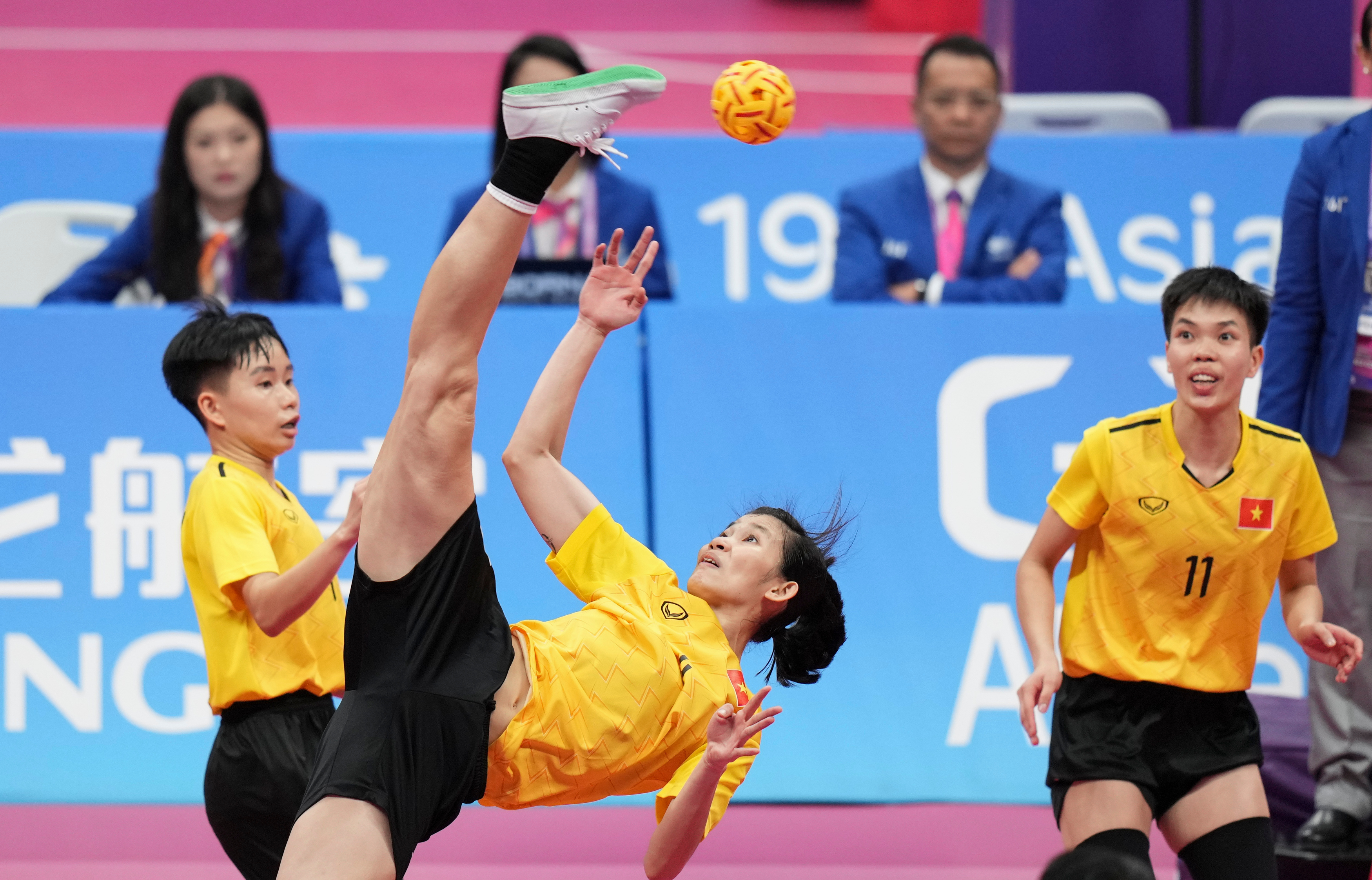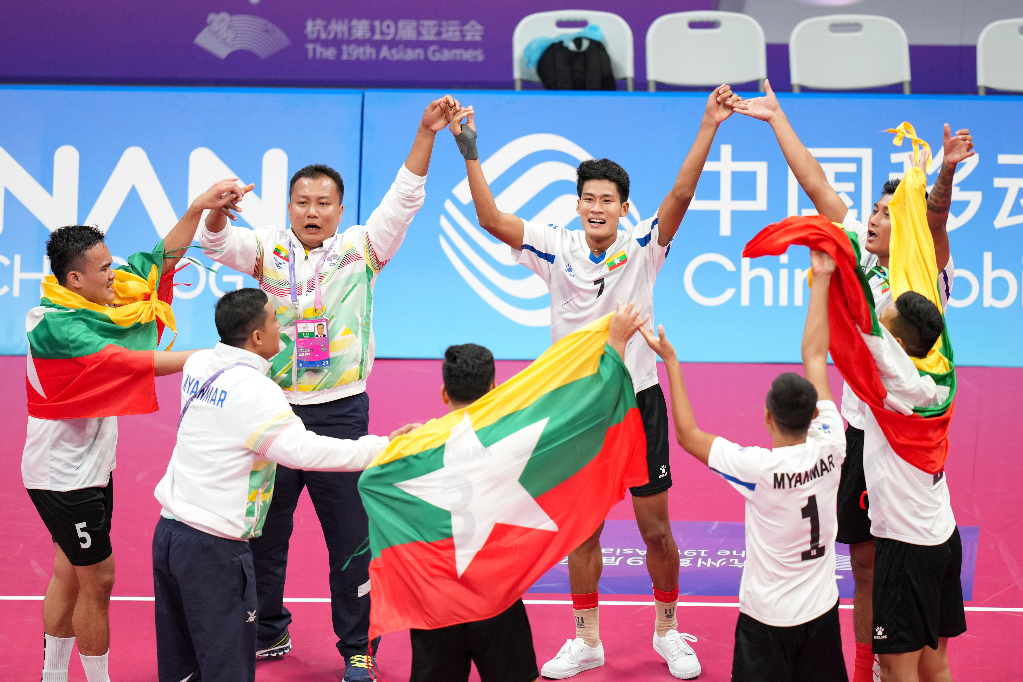 新华社杭州10月4日电(记者吴帅帅)藤球四人赛决赛4日在金华体育中心体育馆展开角逐,缅甸队和越南队分获男、女冠军,印度尼西亚队收获两枚银牌。这也是缅甸代表团本届亚运会获得的首枚金牌。