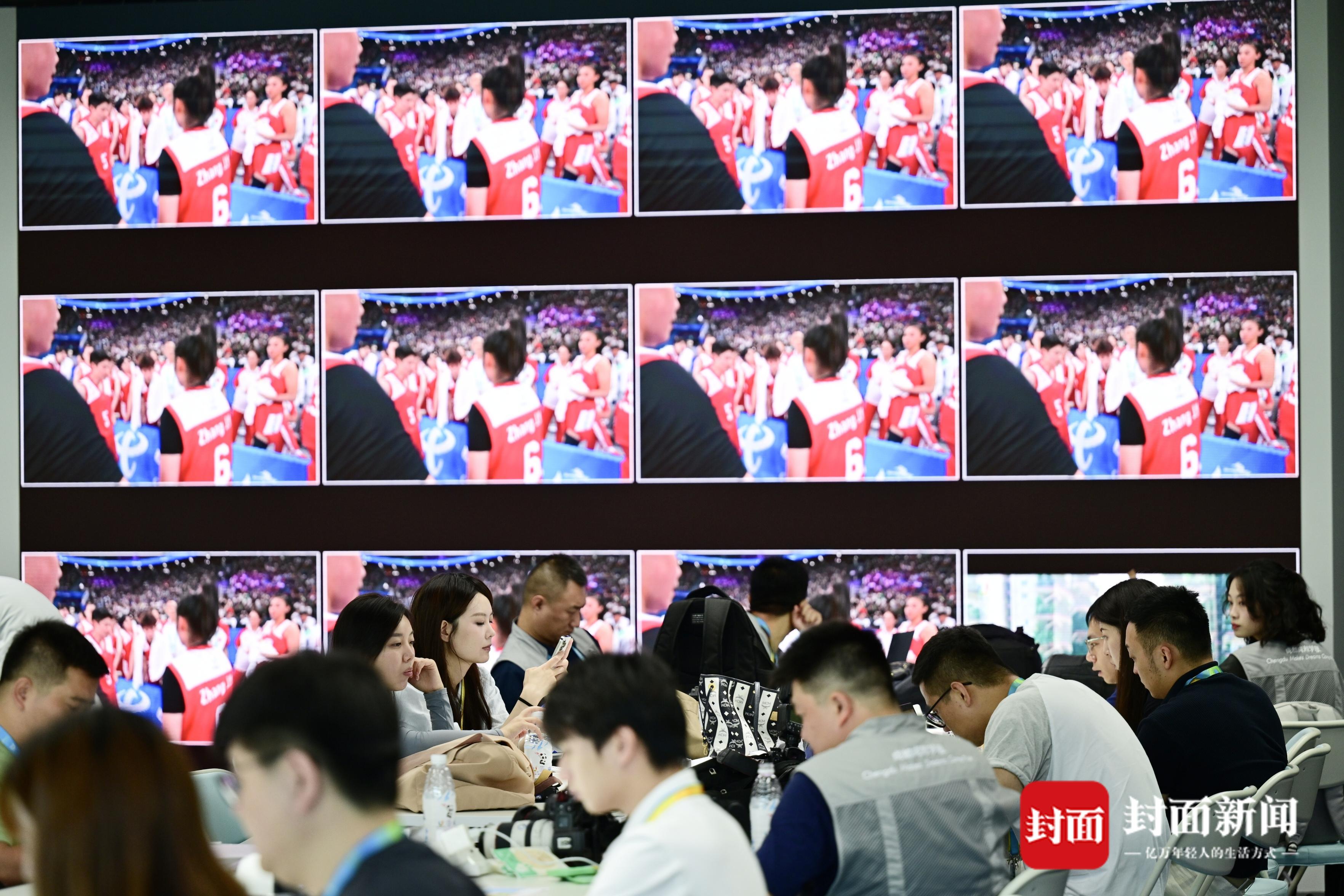 成都大运会即将开幕,主媒体中心内,来自国内外的媒体记者们在这里进行采访和发稿工作。