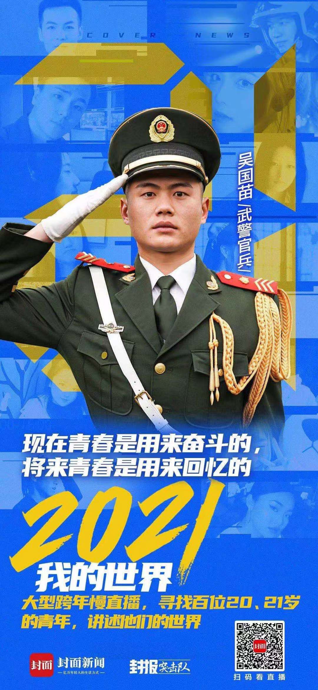 从体育生到升旗方阵的排头兵,高考失利后的吴国苗,只身一人从老家江西来到四川。身高1.86米的他,一入伍就被选入升旗方阵。21岁的他,将参与人生中第6次升旗仪式的护旗任务。从活泼好动逐渐变得沉稳内敛,吴国苗说:“现在青春是用来奋斗的,将来青春是用来怀念的。”