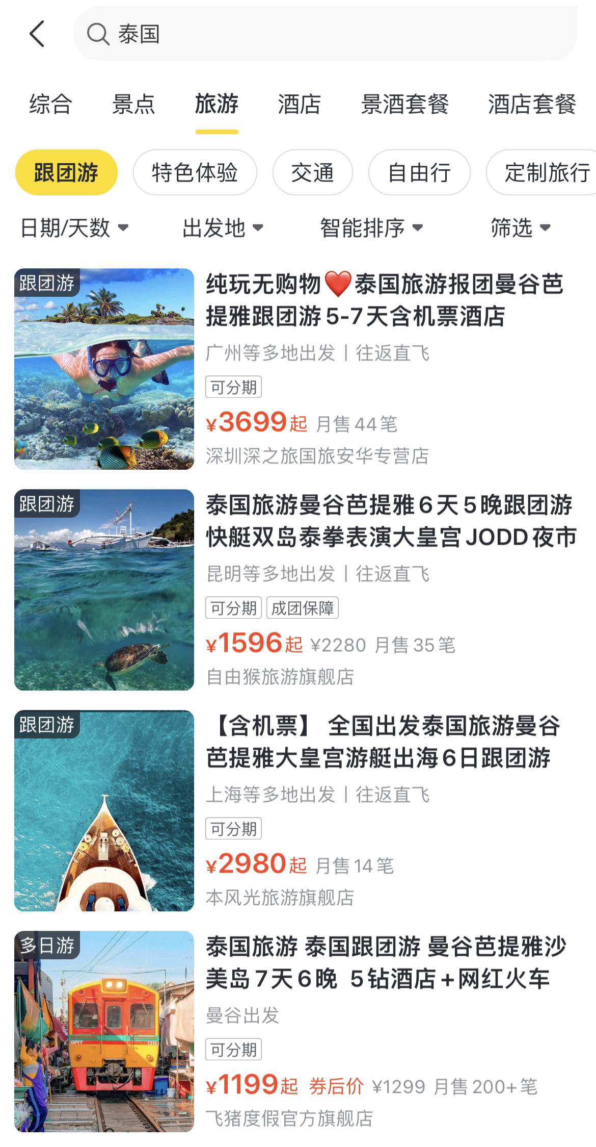 卢女士称,自己出行的时间是3月5日到7日,在曼谷和芭提雅进行了游玩观光。在前期做攻略时,卢女士发现,社交平台上跟“泰国旅游”等词条相关的都是“2000元五日跟团游”“2500元自由行”等。但当自己真正着手准备时,才发现并没有那么便宜。