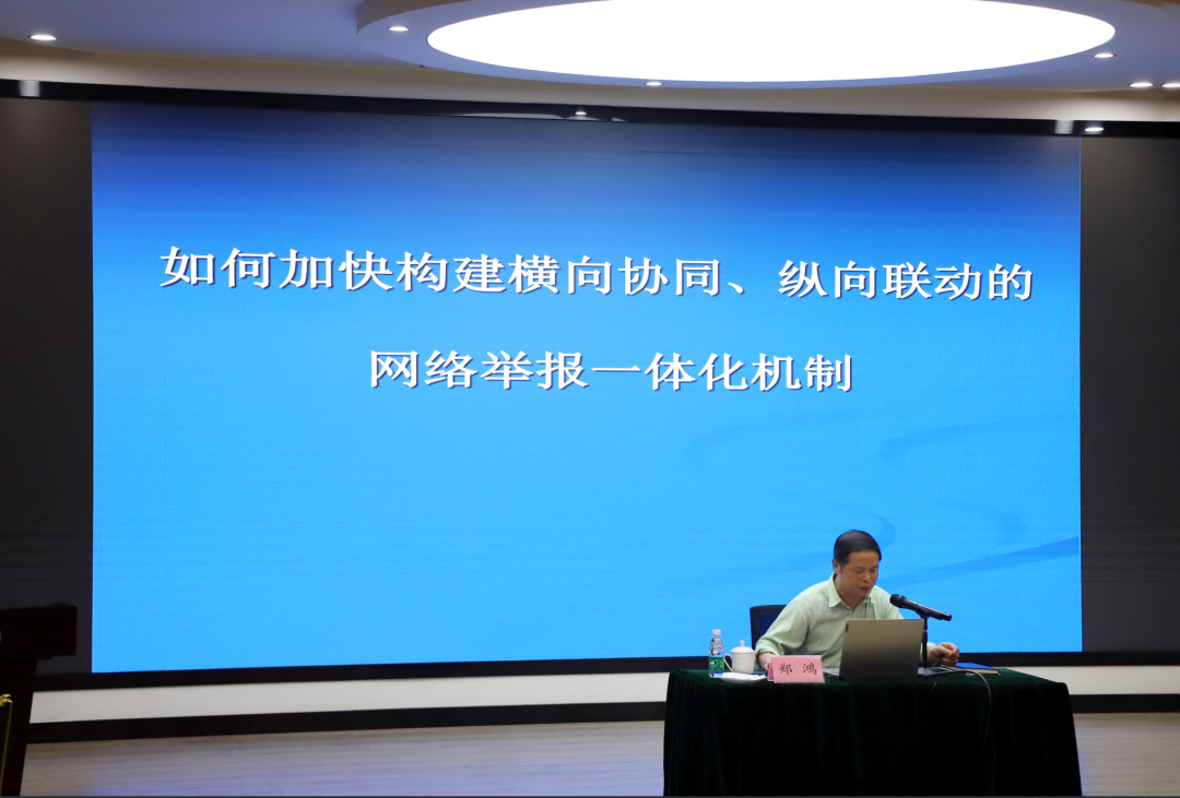 此次培训班邀请了四川省网络治理研究中心郑鸿主任和朱男、崔博鑫两位专家围绕网络举报受理处置一体化机制进行授课,课程包括如何加快构建横向协同、纵向联动的网络举报一体化机制,融媒体时代如何有效开展网络辟谣等。