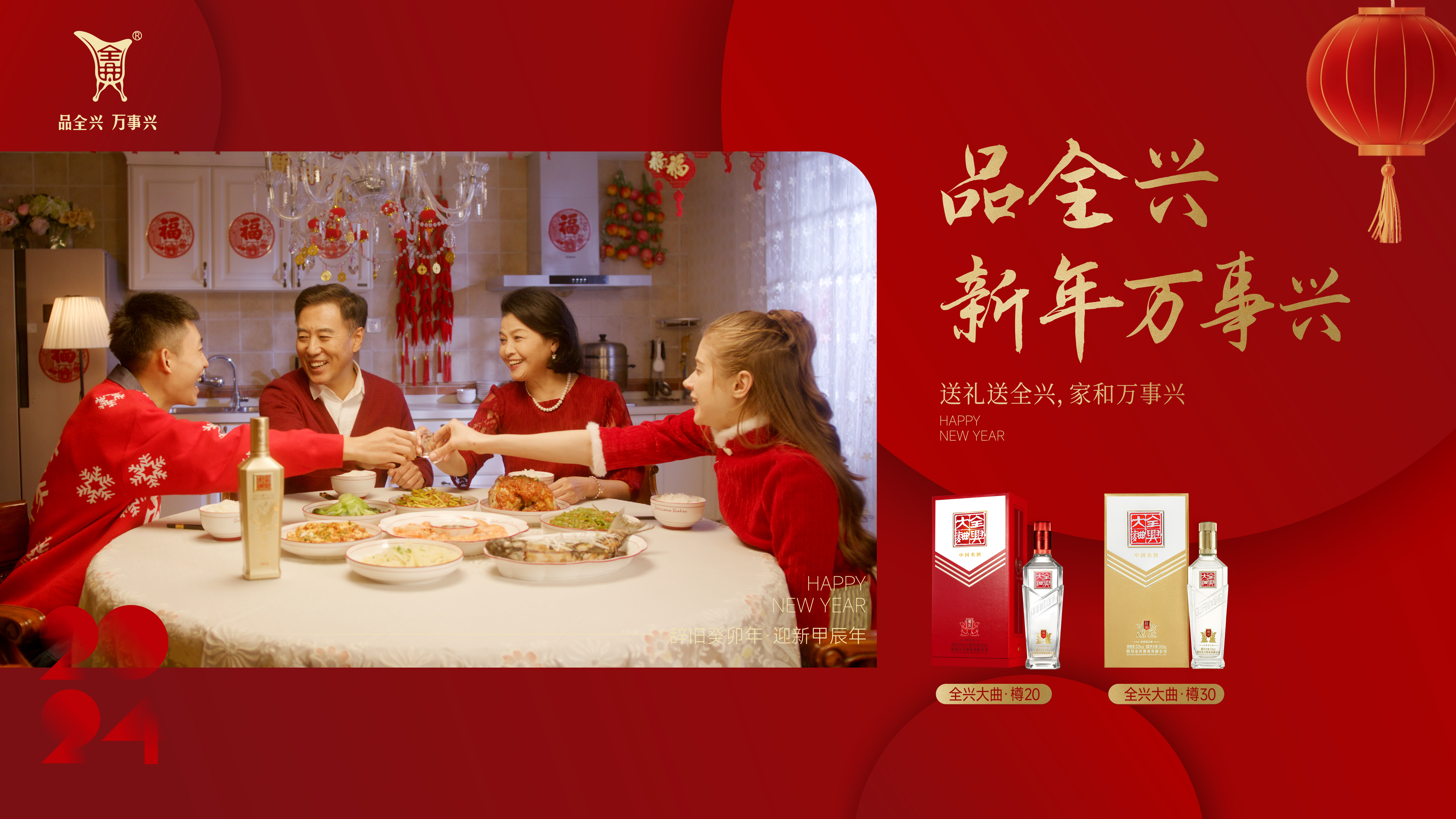 视频以新年团圆为切入点,讲述一个四口之家的过年团聚过程。视频充满创意,内容丰富,情节饱满,妙趣横生。充分展现两代人对于新年的认知,角色既有和蔼可亲的传统父母,又有俏皮可爱的洋儿媳。全兴用传统和现代的巧妙碰撞,东方与西方文化融合,展现出民以食为天,年以酒为福的春节气象,饱含着全兴对广大消费者佳节团圆,诸事兴旺的深切祈愿。