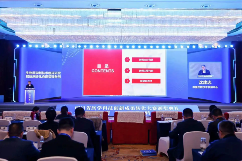 11月3日,四川省医学科技创新成果转化大赛颁奖典礼暨科技创新成果转化大会在成都举办。本次大赛以“鼎新·发展·科促·领航”为主题,涵盖药物、器械、医疗技术、“一带一路”四大赛道162个项目。经过激烈角逐,最终评选出一等奖7项、二等奖10项、三等奖17项。