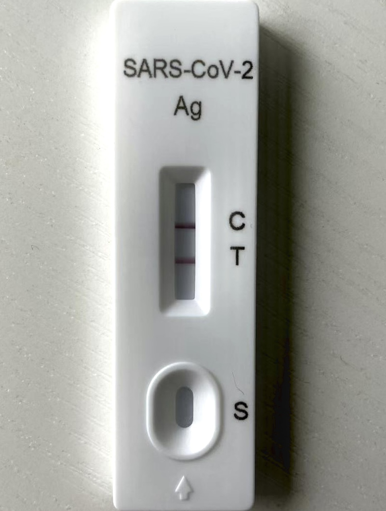 12月6日晚上我发烧了,当时测体温38.2度,伴随的症状就是咽喉肿痛,话都说不出来,身体发冷、四肢无力,于是我用抗原测了一下,两条杠。我立刻给我老婆打电话,我说:“我阳了,你和娃娃这几天不要回来,你们也用自测盒测一下。”