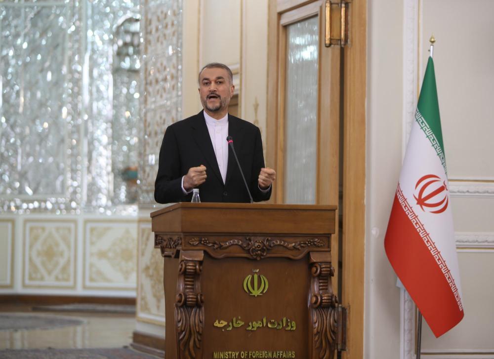 2022年11月23日,伊朗外长阿卜杜拉希扬在德黑兰举行的记者会上讲话。新华社记者高文成摄
