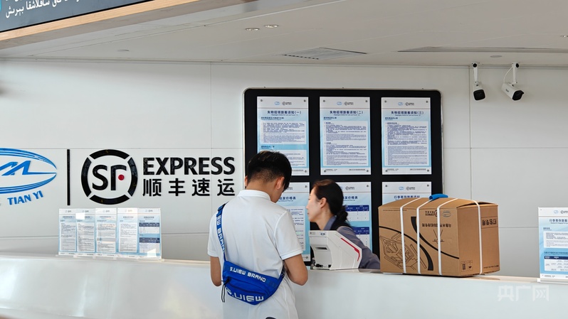 顺丰工作人员在为旅客办理邮寄业务 (央广网记者郭璁悦 摄)