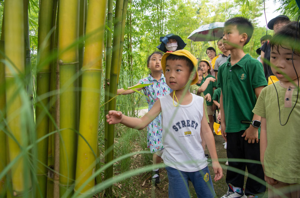 7月3日,孩子们在重庆广阳岛的“生态研学课程”上学习辨识各种植物(唐奕/摄)