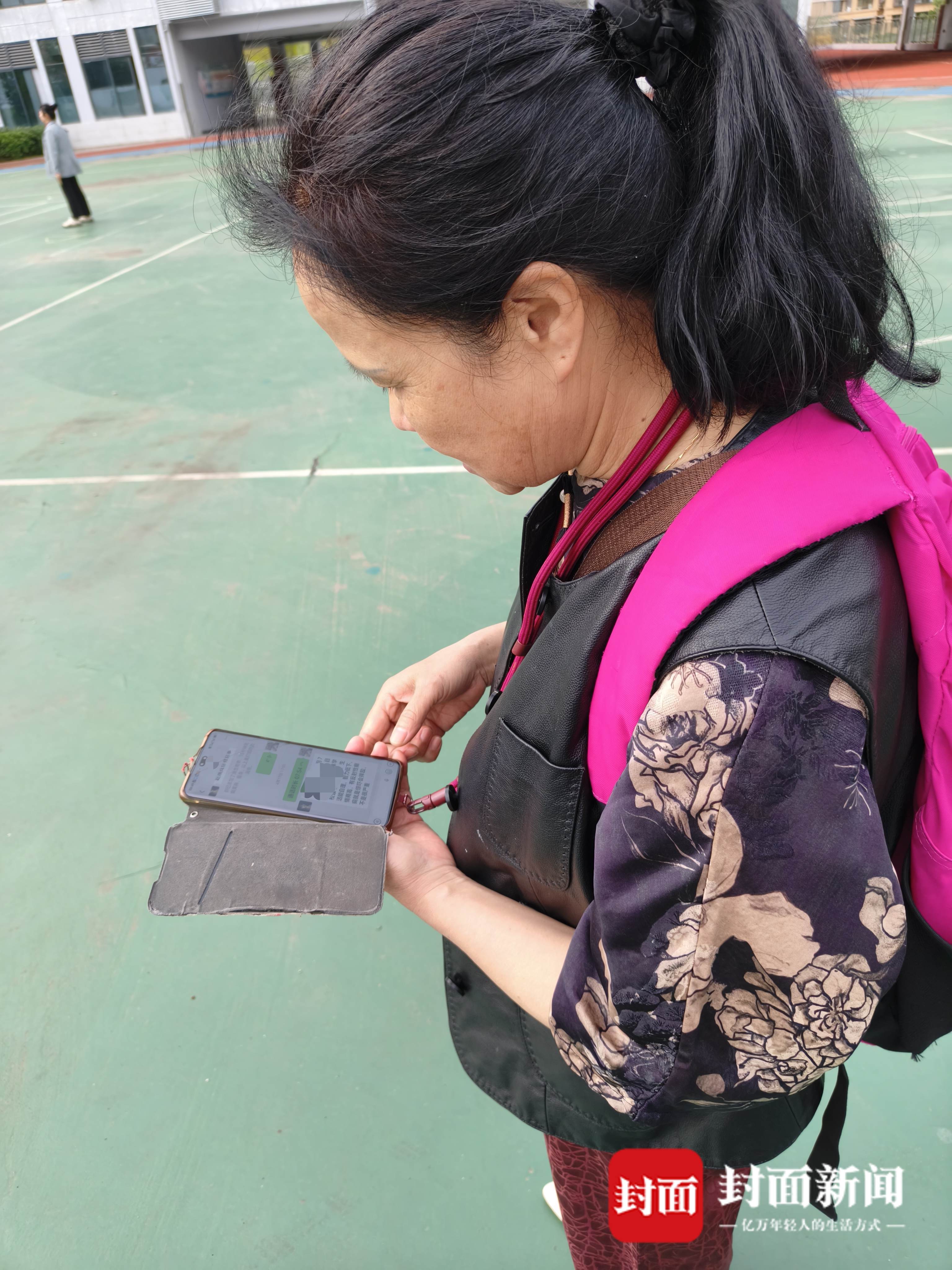 女儿秋华去上课,母亲赵海英回复群里“唐宝”妈妈的消息。谢杰 摄