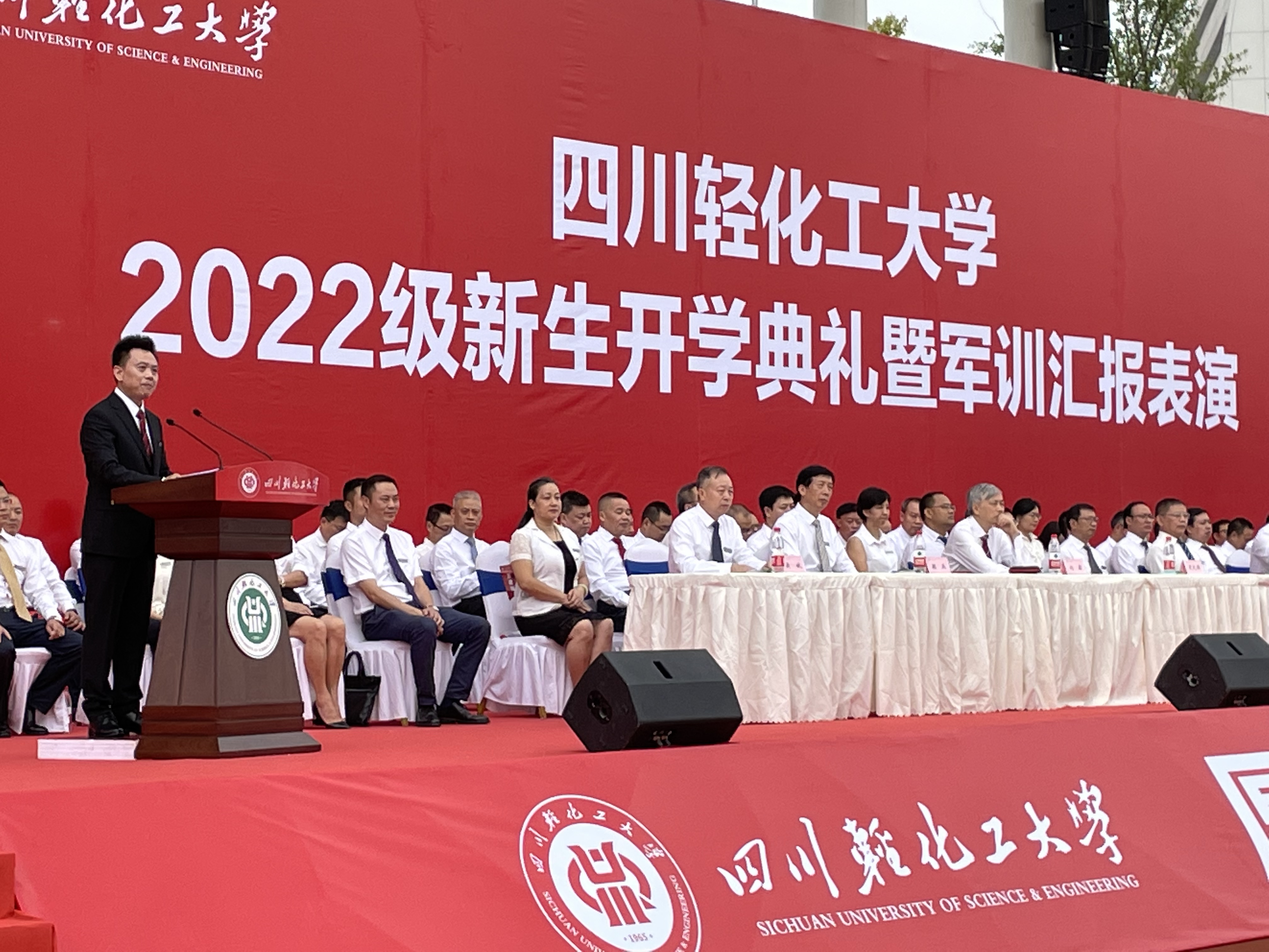 他用言简意赅、充满人文气息的语句向新生们介绍学校,鼓励新生们去感悟川轻化的“大学之大”——“大学期间你们就能深度游川南,在有颜值有内涵、无处不风景的汇东、李白河、宜宾‘三校区’之间求学徜徉。”“川轻化为青年筑未来、为祖国担使命的精神传承,致力于解决‘卡脖子’难题的科学精神,652学者助学子攀登不止的师者风范,将让你们尽快地融入这所大学,成为传承光亮和希望的川轻化守护者,那时再回味这句初见之语,大家必能自然而然地对学校说上一句‘绝绝子’。”