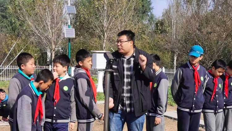 沈阳农业大学农学院大气科学系讲师王立为为小学生做科普课程。受访者供图