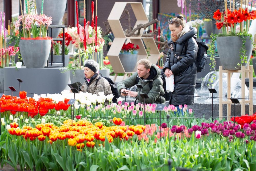 3月23日,游客在荷兰利瑟的库肯霍夫公园拍摄郁金香。新华社发(西尔维娅·莱德雷尔摄)