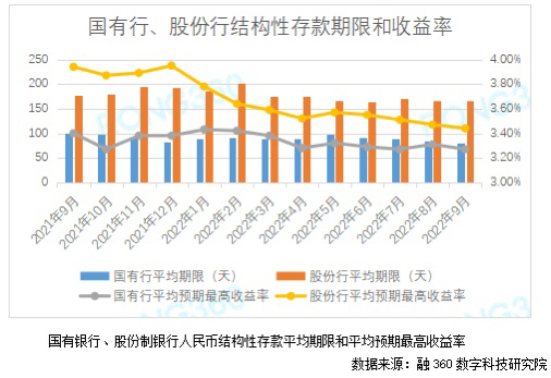 中国人民银行最新公布的数据显示,截至9月末结构性存款余额约为9万亿,环比上月压缩4450亿。今年结构性存款1-4月连续回升后,至4月末达到历史峰值。不过5月后连续5个月下降。