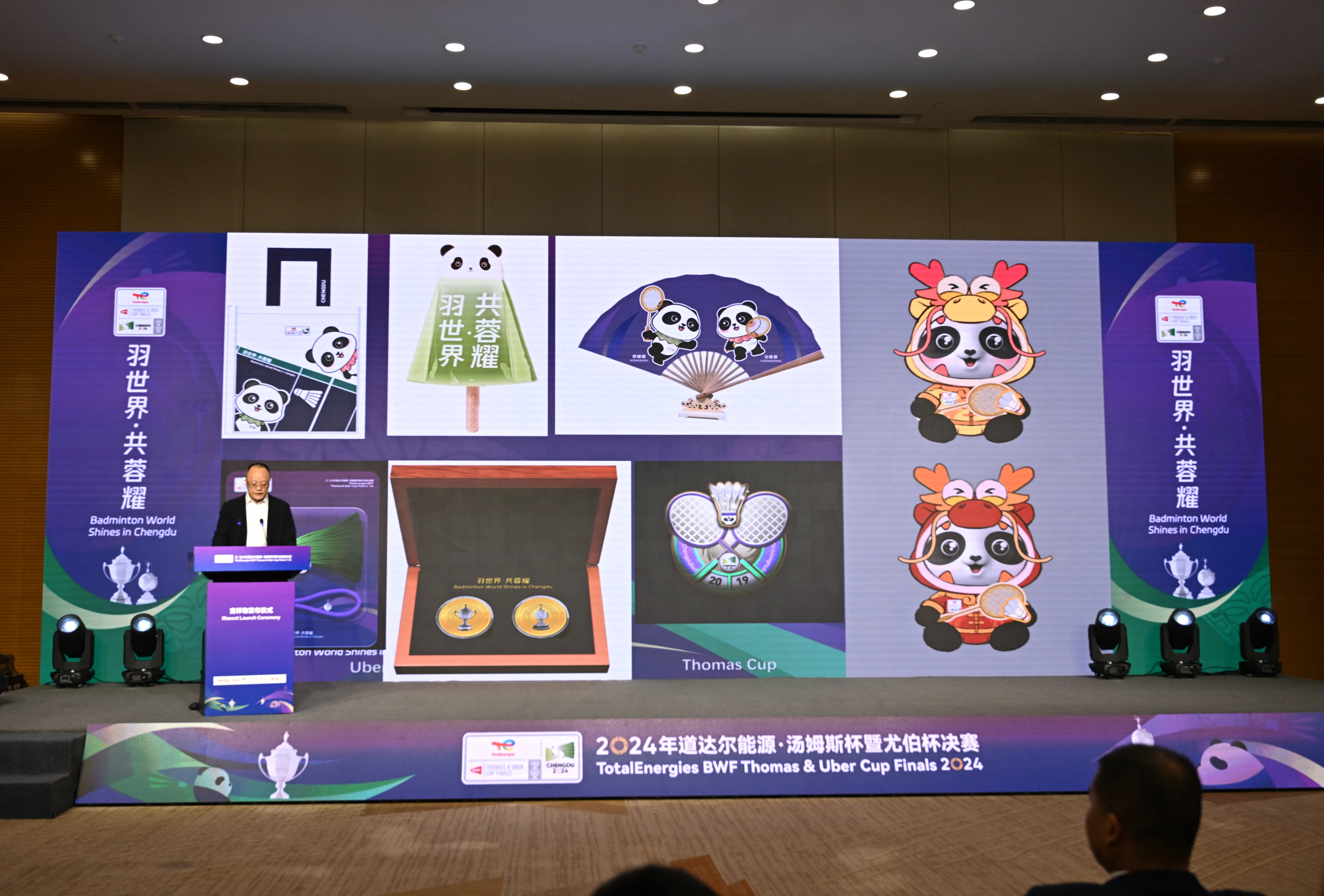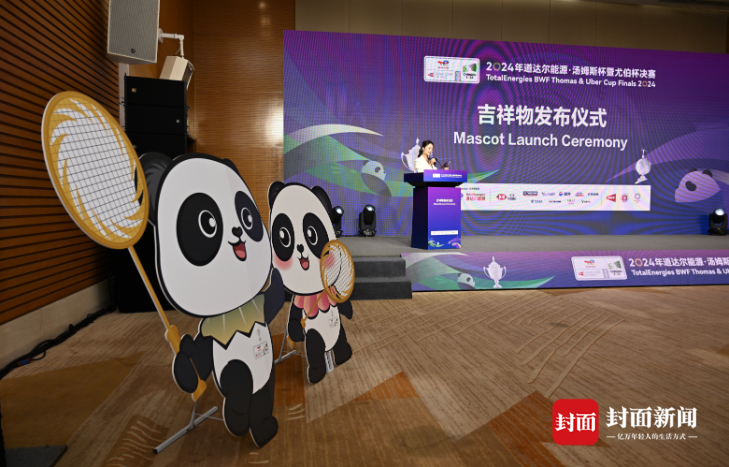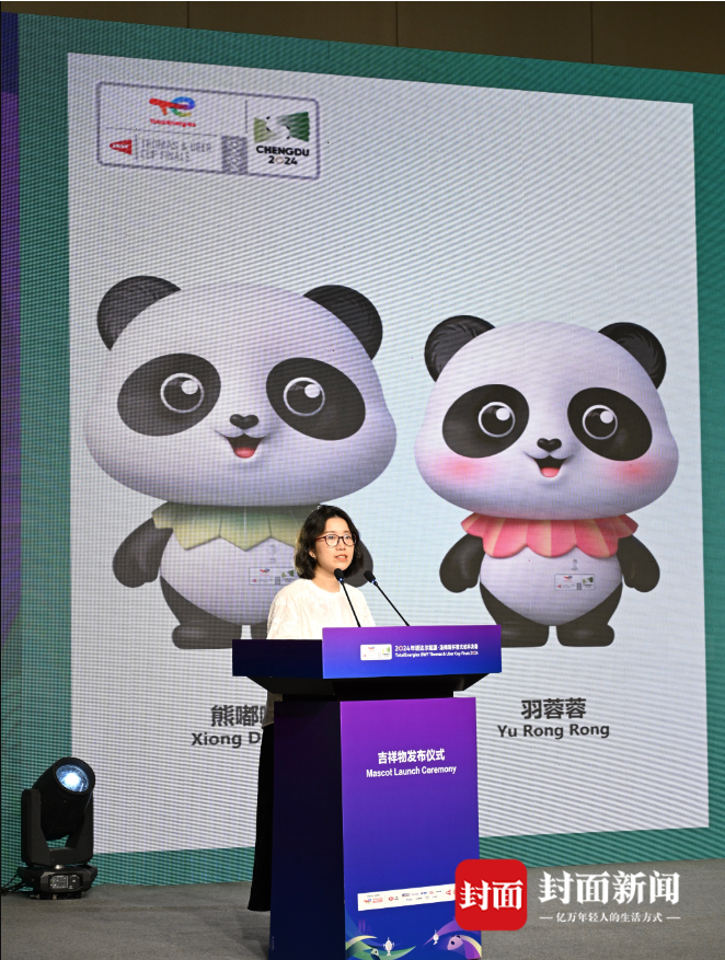 4月14日,2024年道达尔能源·汤姆斯杯暨尤伯杯决赛(以下简称成都2024汤尤杯)吉祥物发布仪式在四川传媒大厦多功能厅举行,两大吉祥物“熊嘟嘟”和“羽蓉蓉”首次公开亮相。