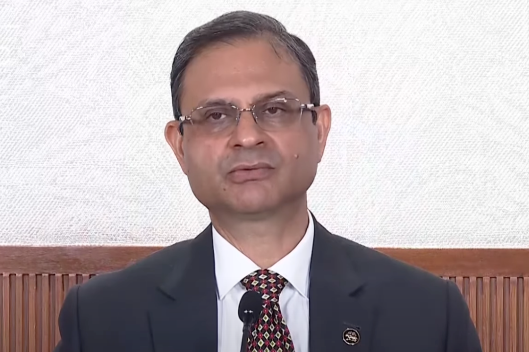 当地时间8月6日,马尔霍特拉在政策会议结束后接受记者采访。图为外媒发布的采访视频截图