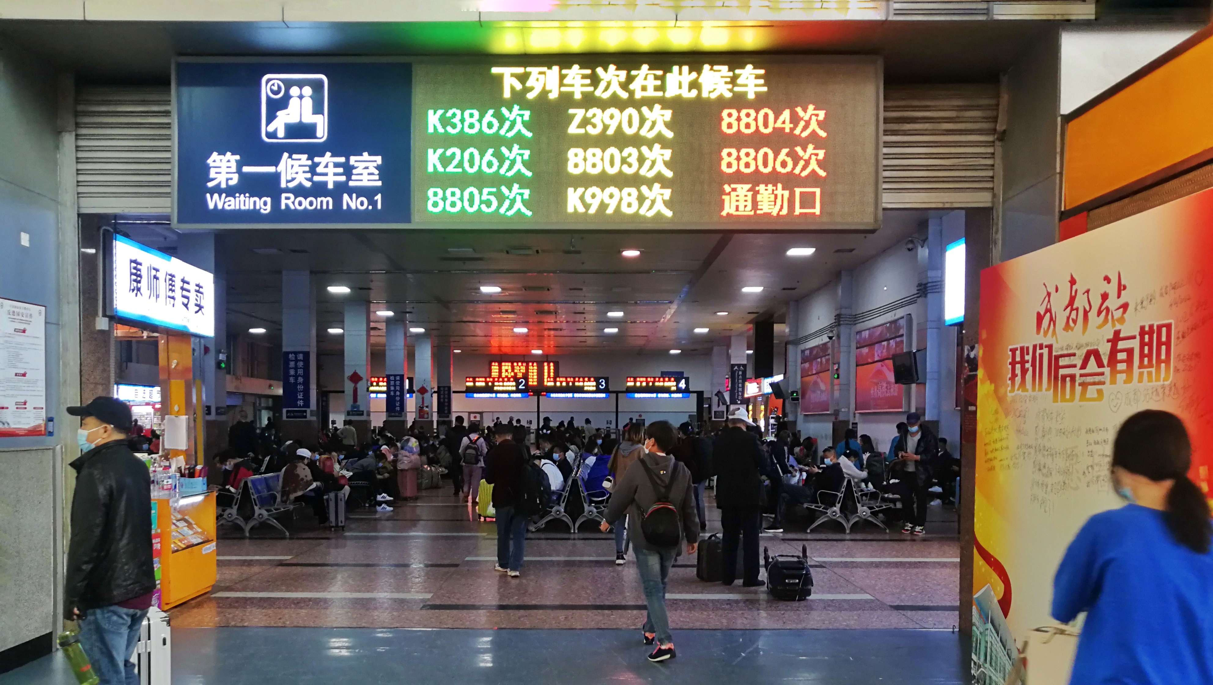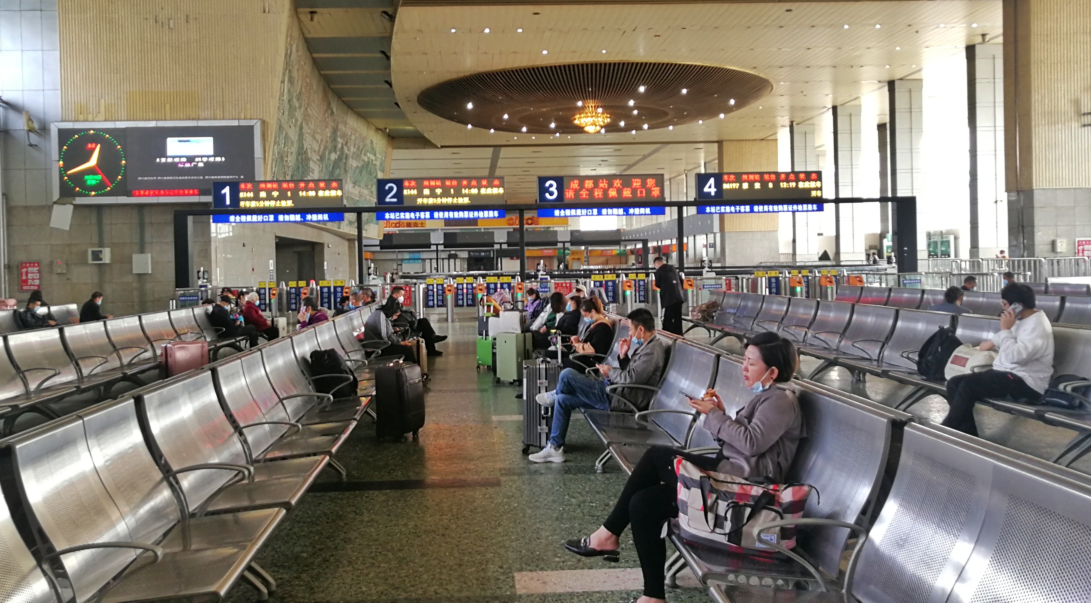 ▲ 2022年10月10日,旅客在成都站(火车北站)候车大厅候车