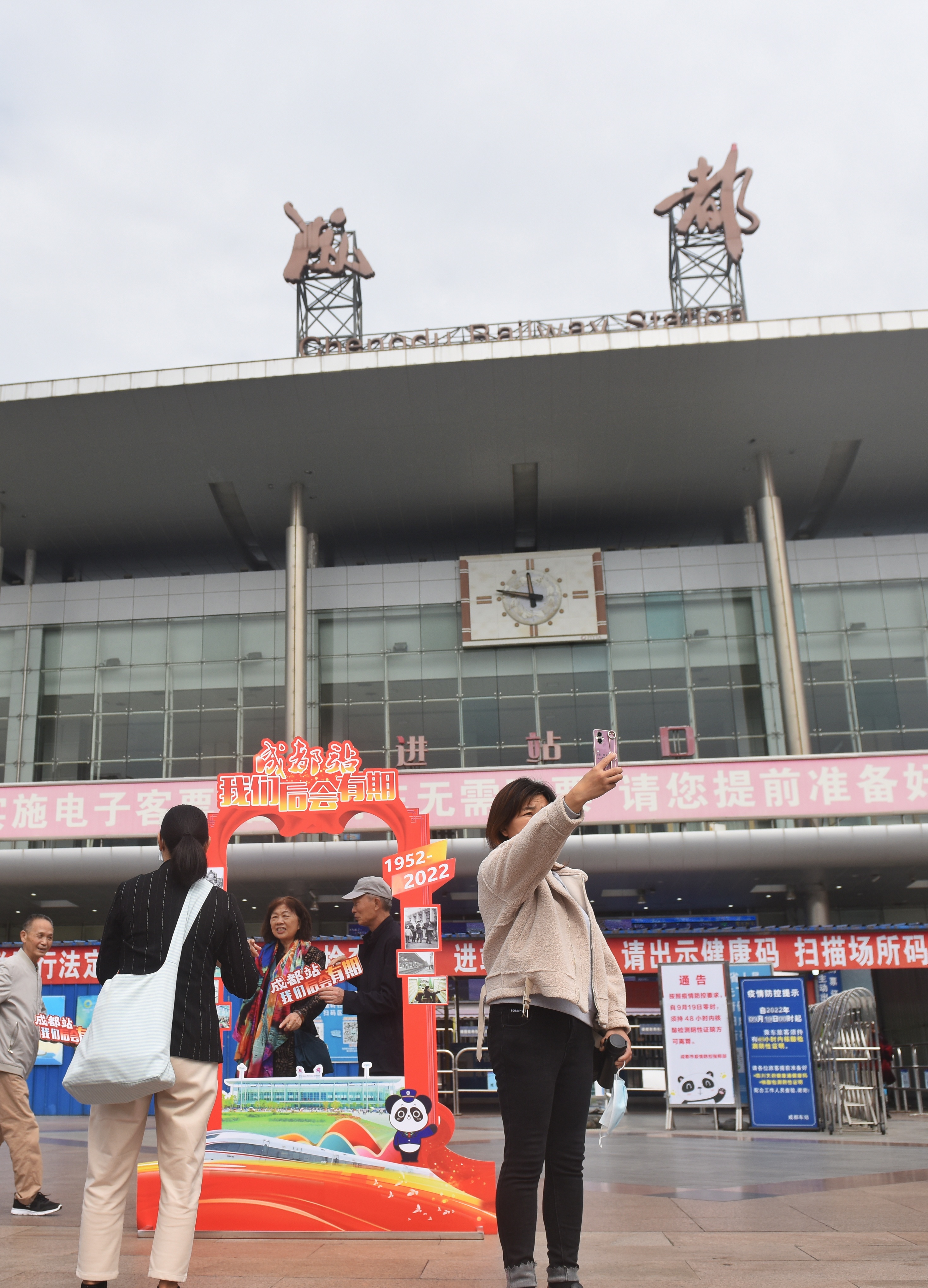 ▲ 2022年10月10日,铁路员工在成都站拍照留念