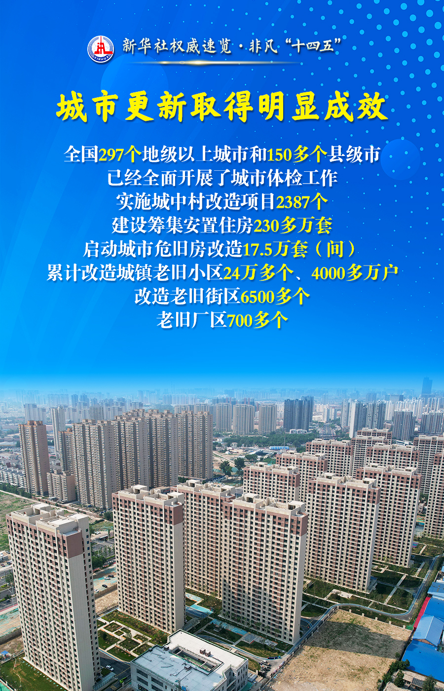 实施老旧小区改造,推动“好房子”建设,城市更新取得明显成效……“十四五”期间,全国住房城乡建设系统努力为经济社会发展作贡献,为民生改善办实事,不断满足人民群众日益增长的美好生活需要,取得了一系列实实在在的新成就。跟随海报,一起了解。