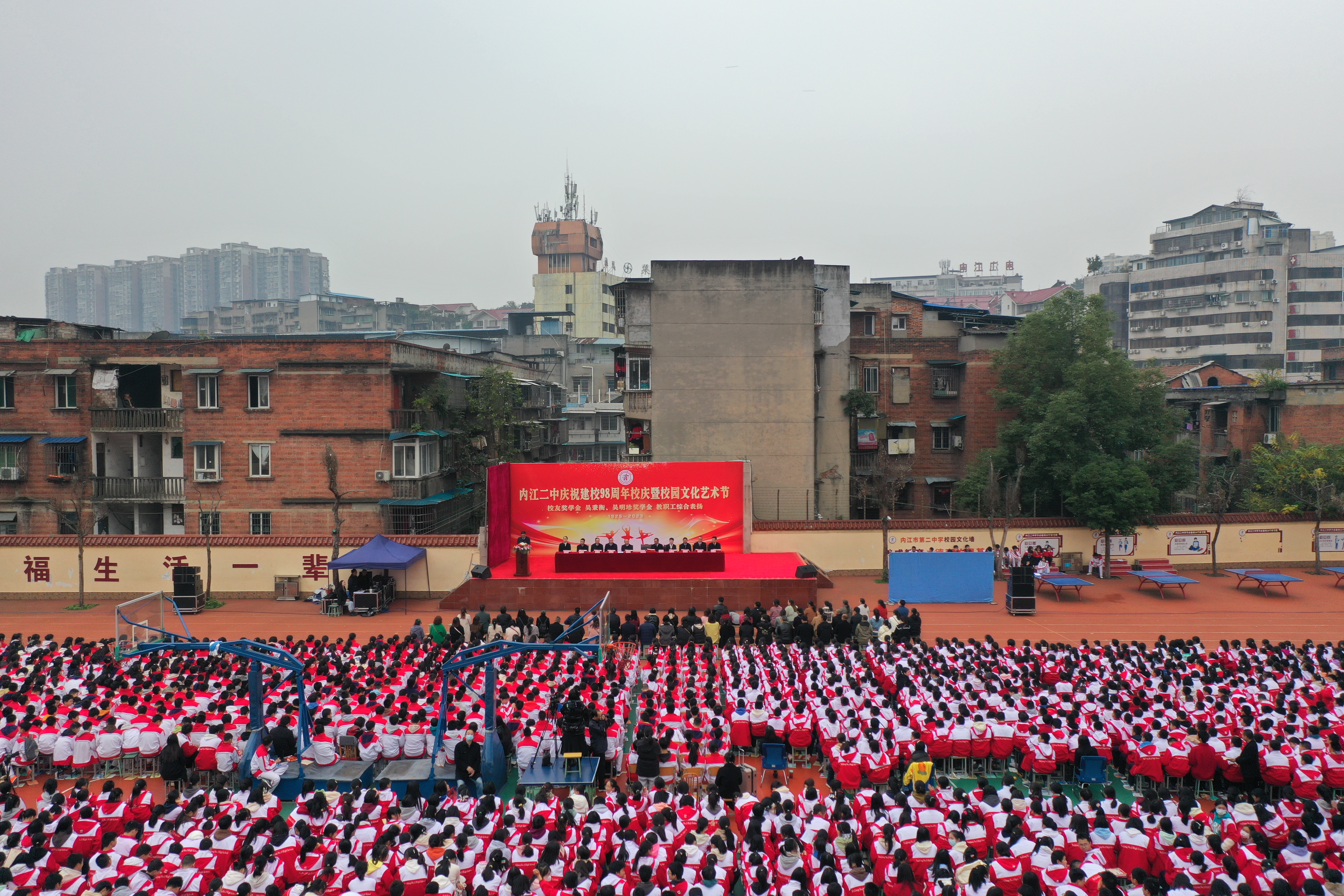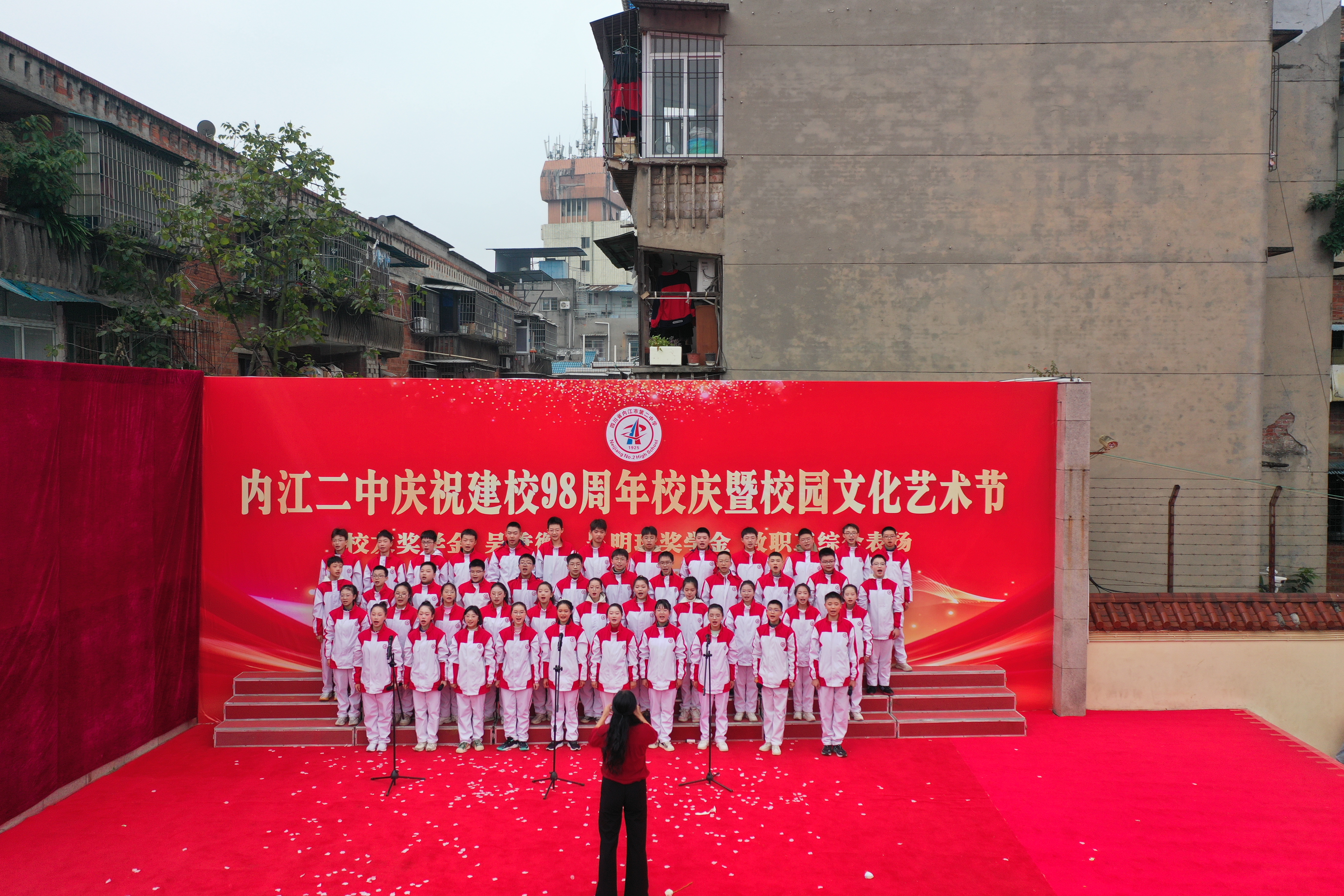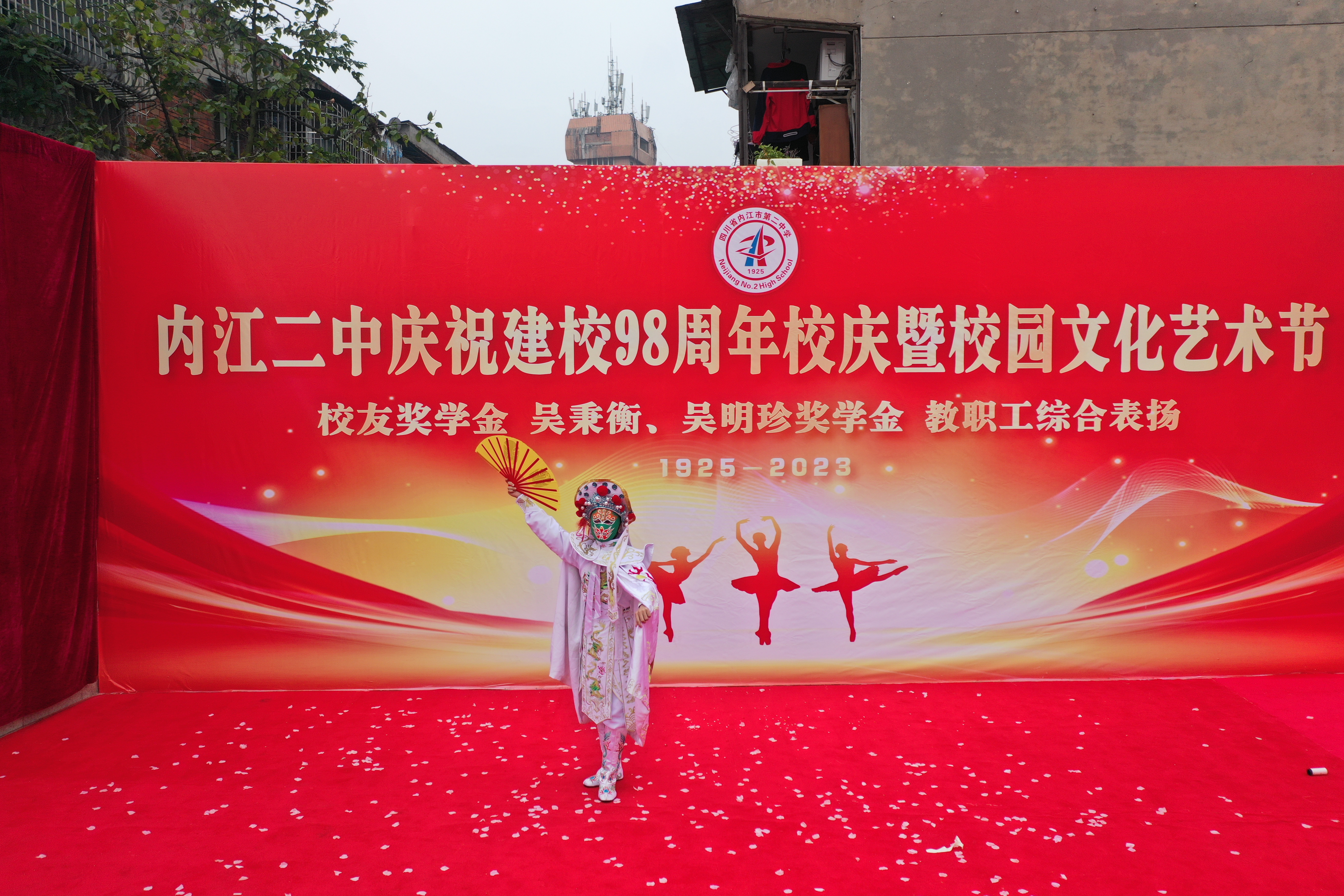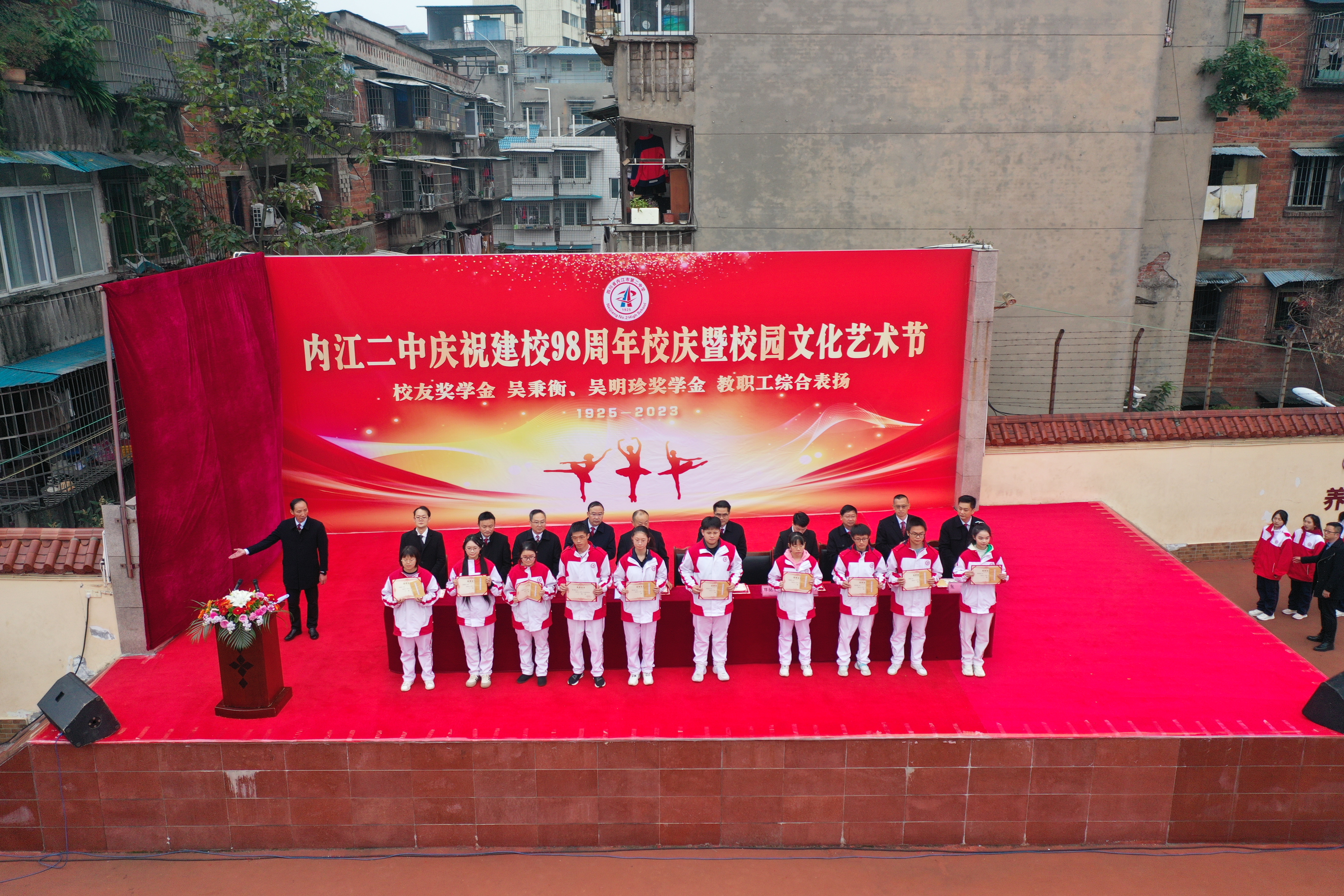 11月21日上午,四川省内江市第二中学举行建校九十八周年庆暨校园艺术节文艺汇演。活动颁发了第二十八届校友奖学金和吴秉衡、吴明珍教育奖学金,举行了第八届教职工综合表扬仪式,颁发了新秀奖、园丁奖、冠英奖,鼓励师生以先进典型为榜样,奋发有为,力争上游。