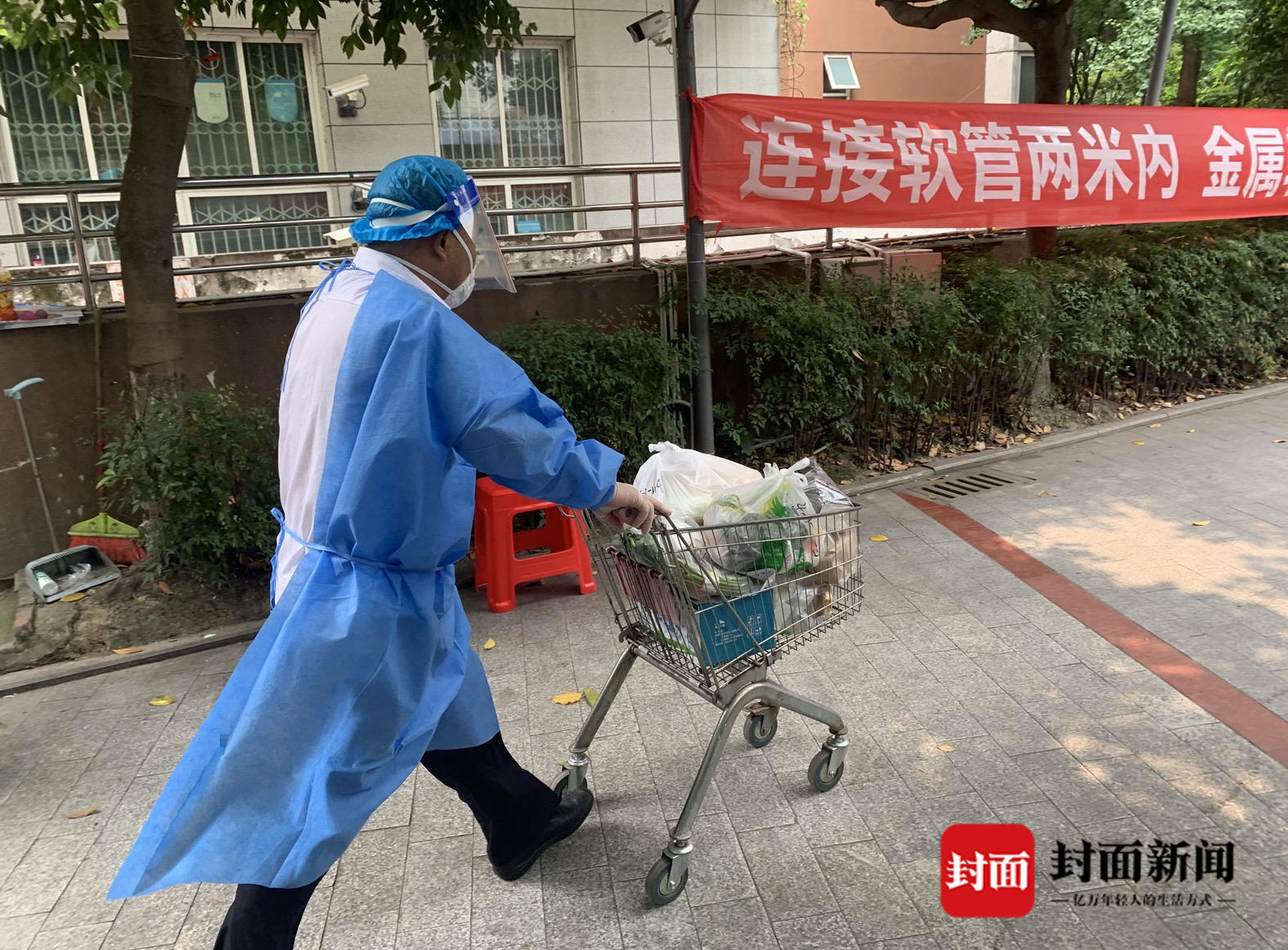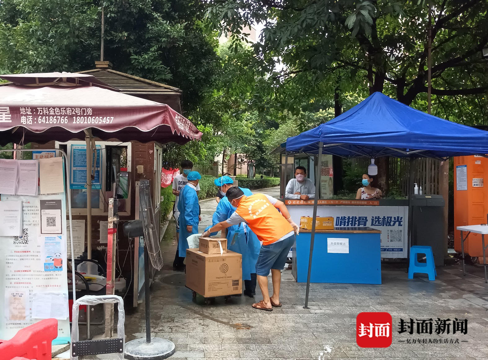 7月29日,封面新闻记者从成都成华区获悉,自跳蹬河街道杉板桥社区红枫岭1期枫祥苑部分楼栋风险等级由低风险区调整为高、中风险区后,为了保障小区居民日常生活,社区、物业、业委会共同组建了小区志愿者队伍,专门配送每天居民购买的生活物资。