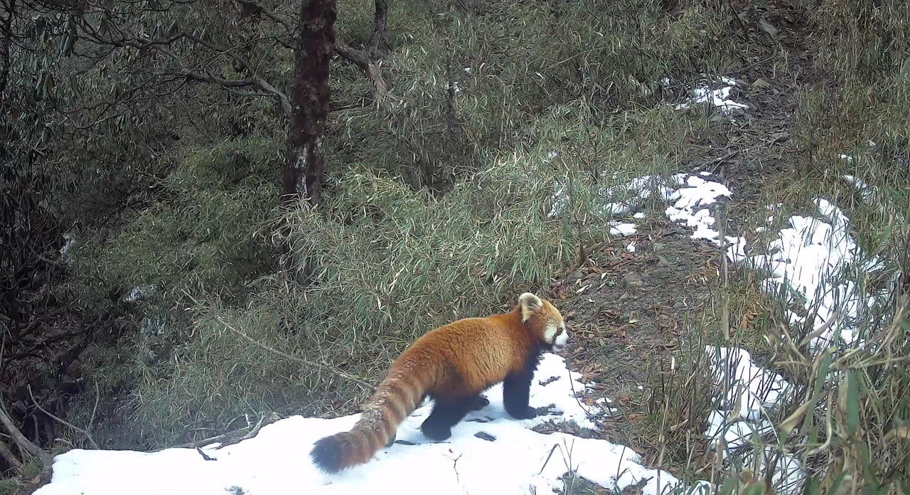 据2017年雪豹专项调查,位于大邑和崇州区域的雪豹为4只或5只,大邑区域此次拍摄到的雪豹为幼年,在红外相机镜头前匆匆而过。