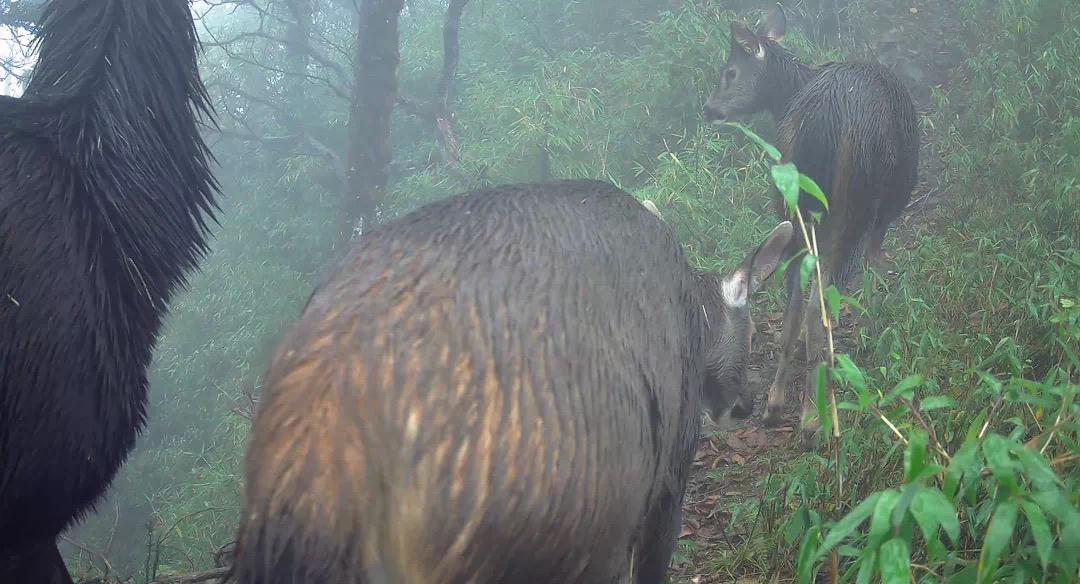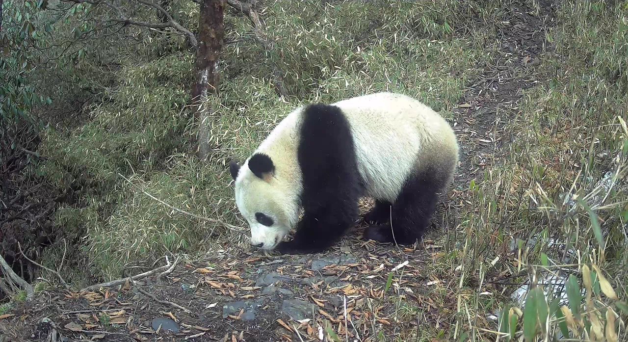 同时,在大邑区域的另一台红外相机上,还拍摄到了一只成年大熊猫优哉游哉地从镜头前经过。相关数据卡中还发现了羚牛、林麝、黑熊、岩羊、小熊猫等多种野生动物。