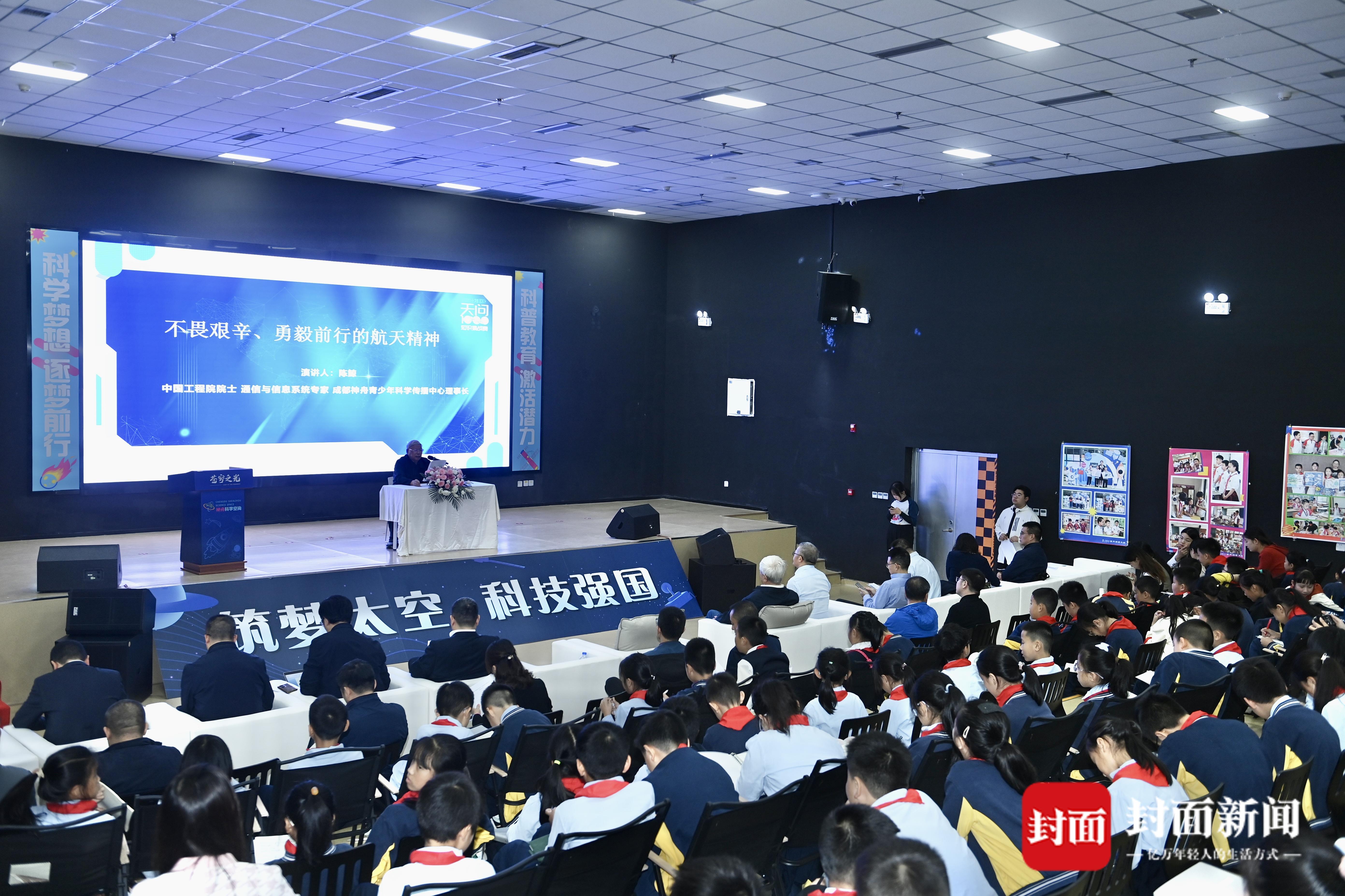 现场科学巨星闪耀,中国工程院院士、“神舟”号飞船总设计师戚发轫,中国工程院院士、中国运载火箭系列总设计师龙乐豪,中国工程院院士、通信与信息系统专家、成都神舟青少年科学传播中心理事长陈鲸,中国工程院院士、中国工程物理研究院研究员邓建军,俄罗斯工程院外籍院士、电子科技大学网络空间安全学院院长张小松,中国人民解放军首批航天员陈全等嘉宾受邀出席。科学家与专家们的到来,让孩子们感到非常欣喜。无论是上午的颁奖典礼,还是下午的论坛,专家们的真知灼见为青少年带来一次次启迪。