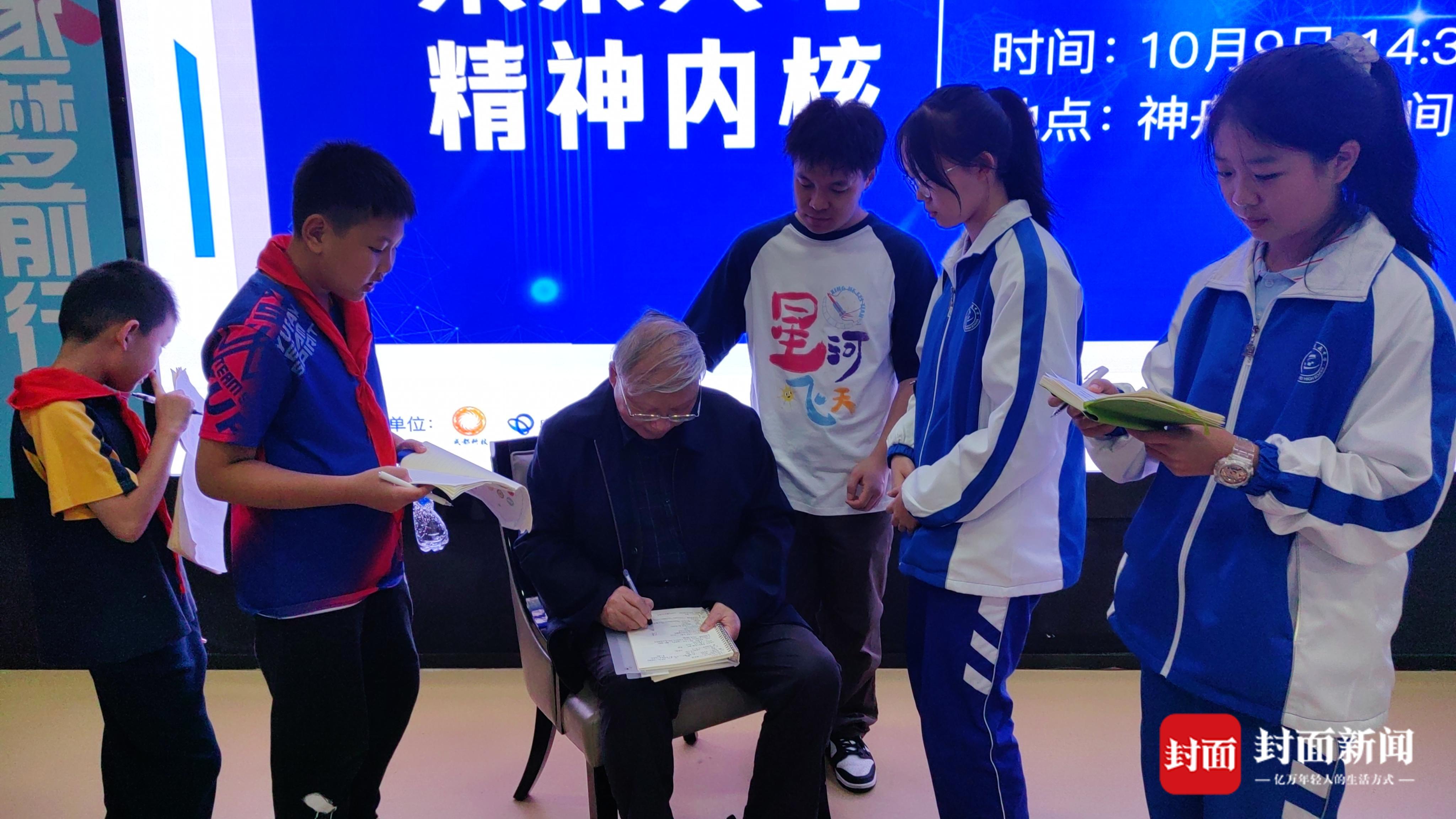 陈鲸院士为孩子们签名。