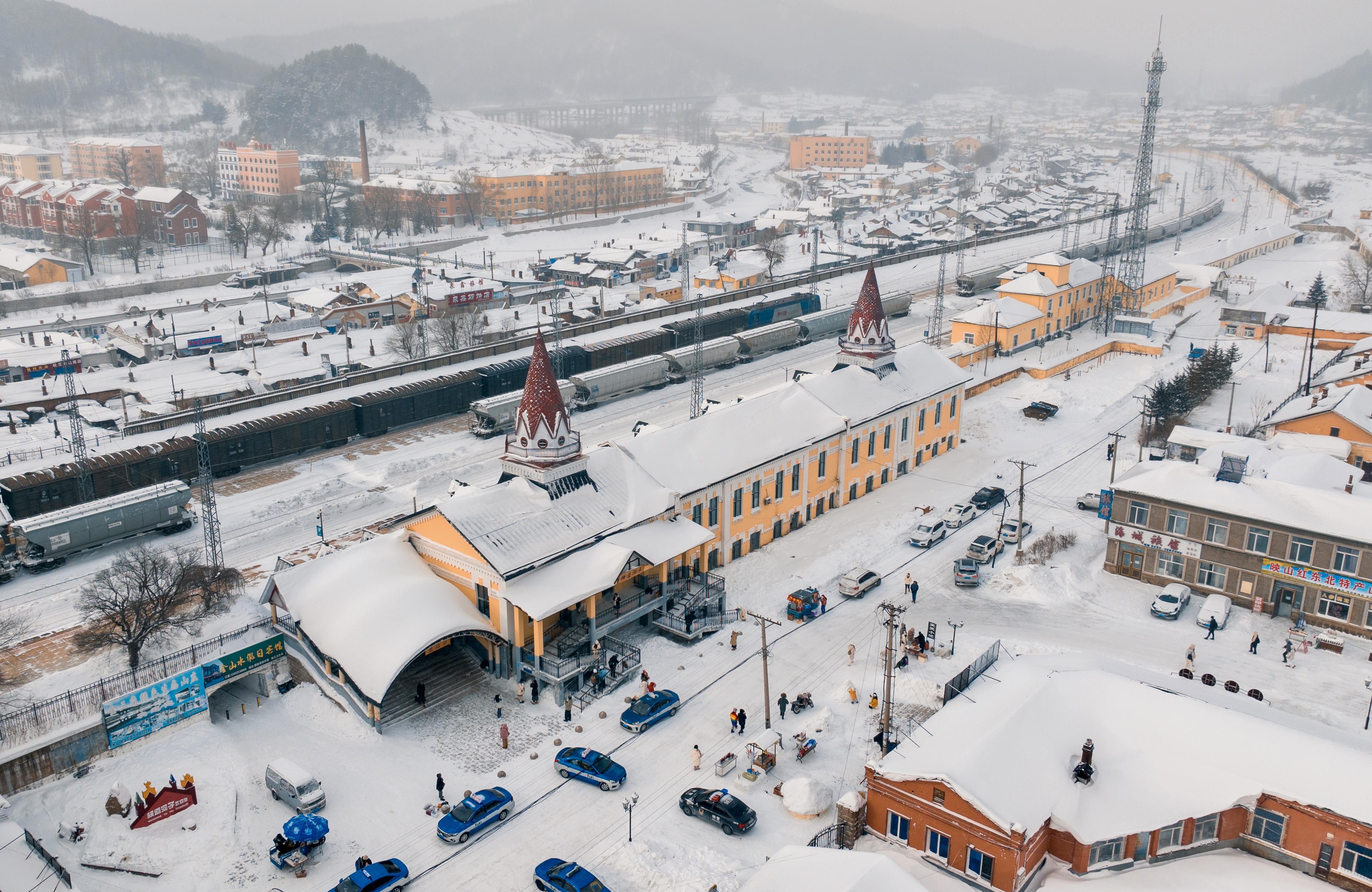 “小镇特别‘出片’,百年铁路与雪景融合,别有一番风味。”广东游客高月兰说,她前一天还在吉林旅游,得益于发达的交通网络,短时间内能一览东北多地的冰雪风光。