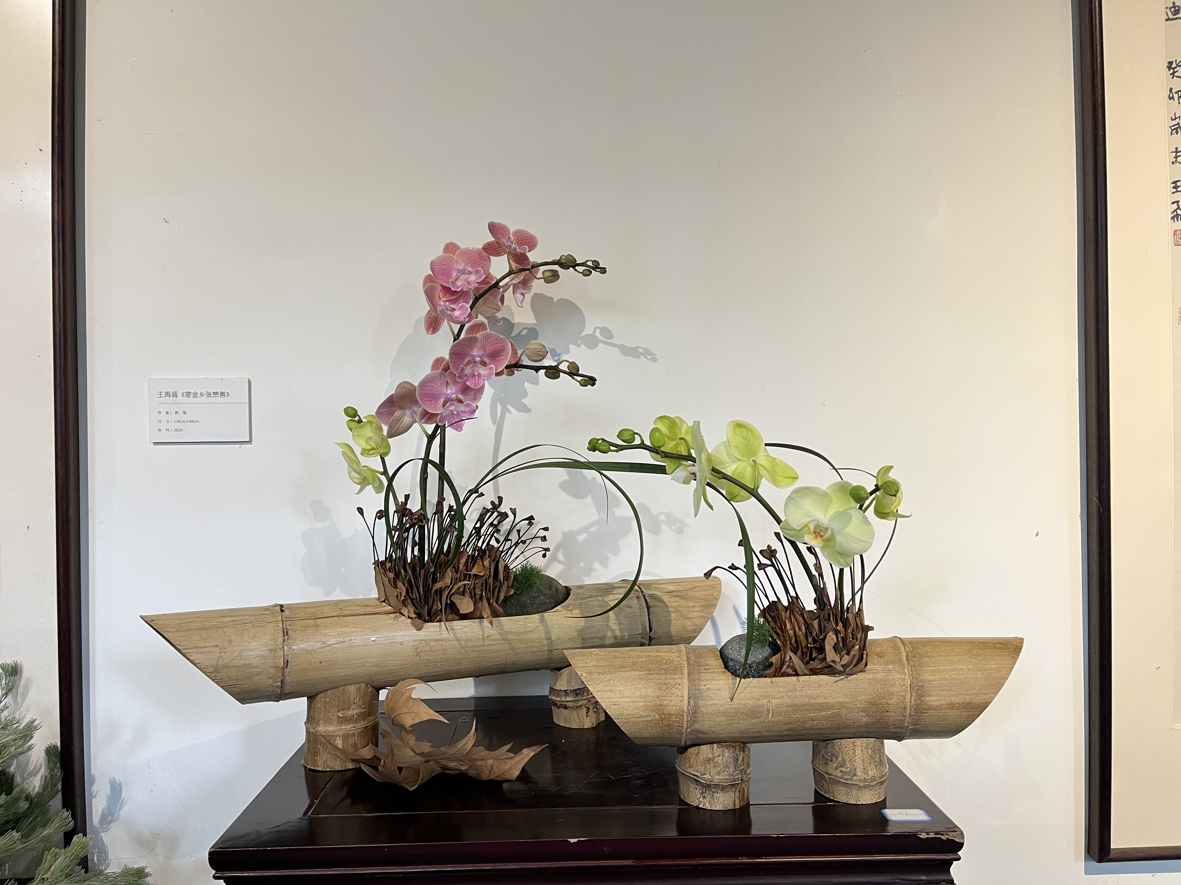 他观察到一个现象:现在的年轻人买花,越来越讲究“高级感”。“怎么让色彩、造型变得更高级?”蒋跃军说。中式插花讲究线条、讲究留白、讲究意境,恰好契合了这种对“高级感”的追求。