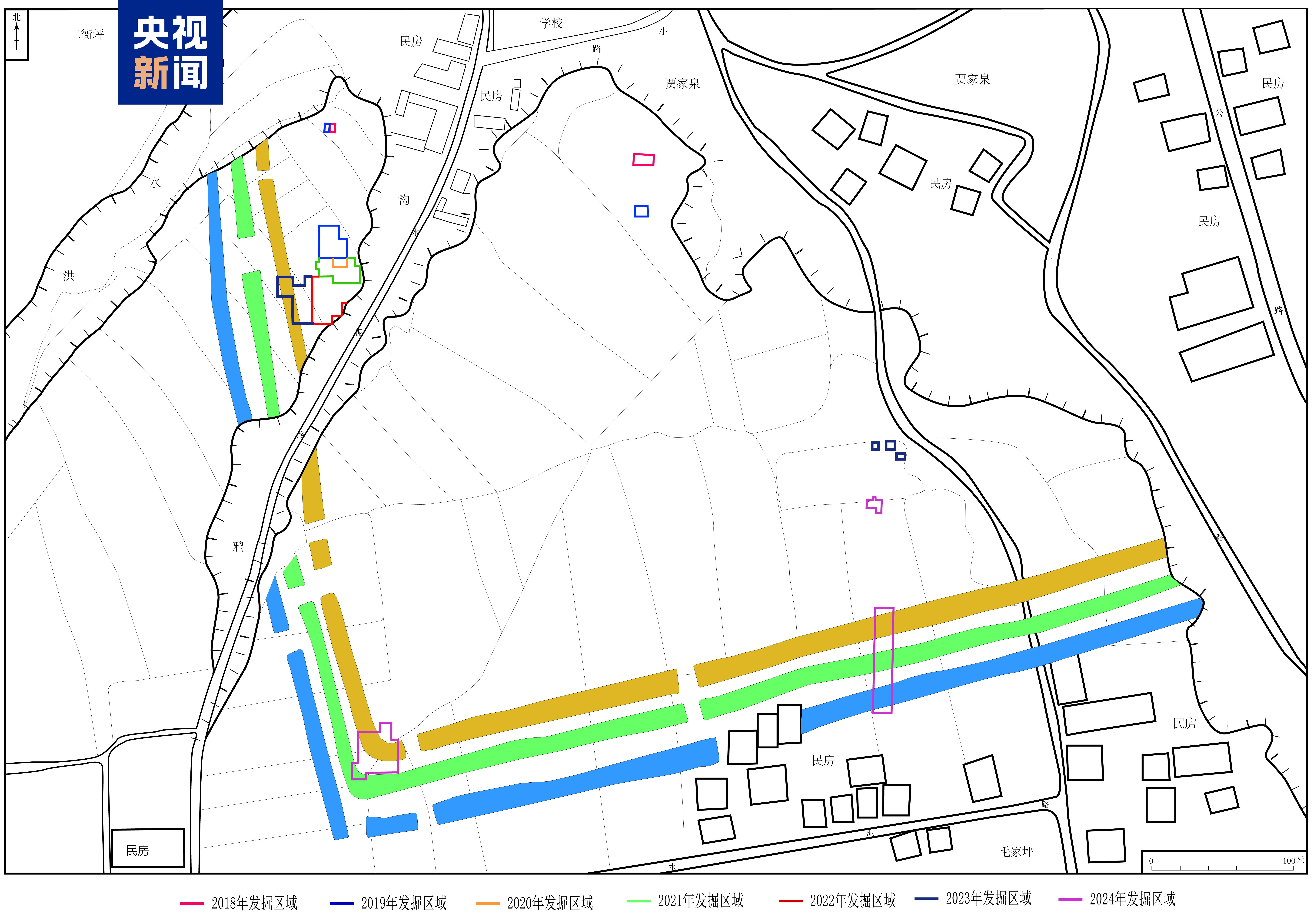 △大洞遗址历年发掘区示意图