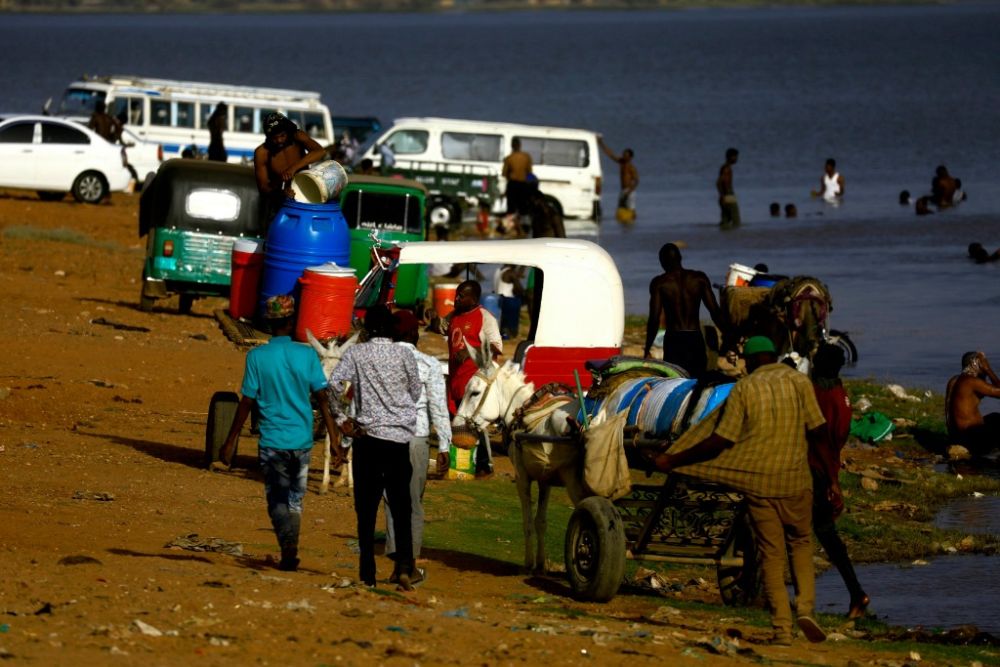 4月17日,由于武装冲突导致停水,苏丹喀土穆市民到尼罗河打水。新华社发(穆罕默德·海德尔摄)