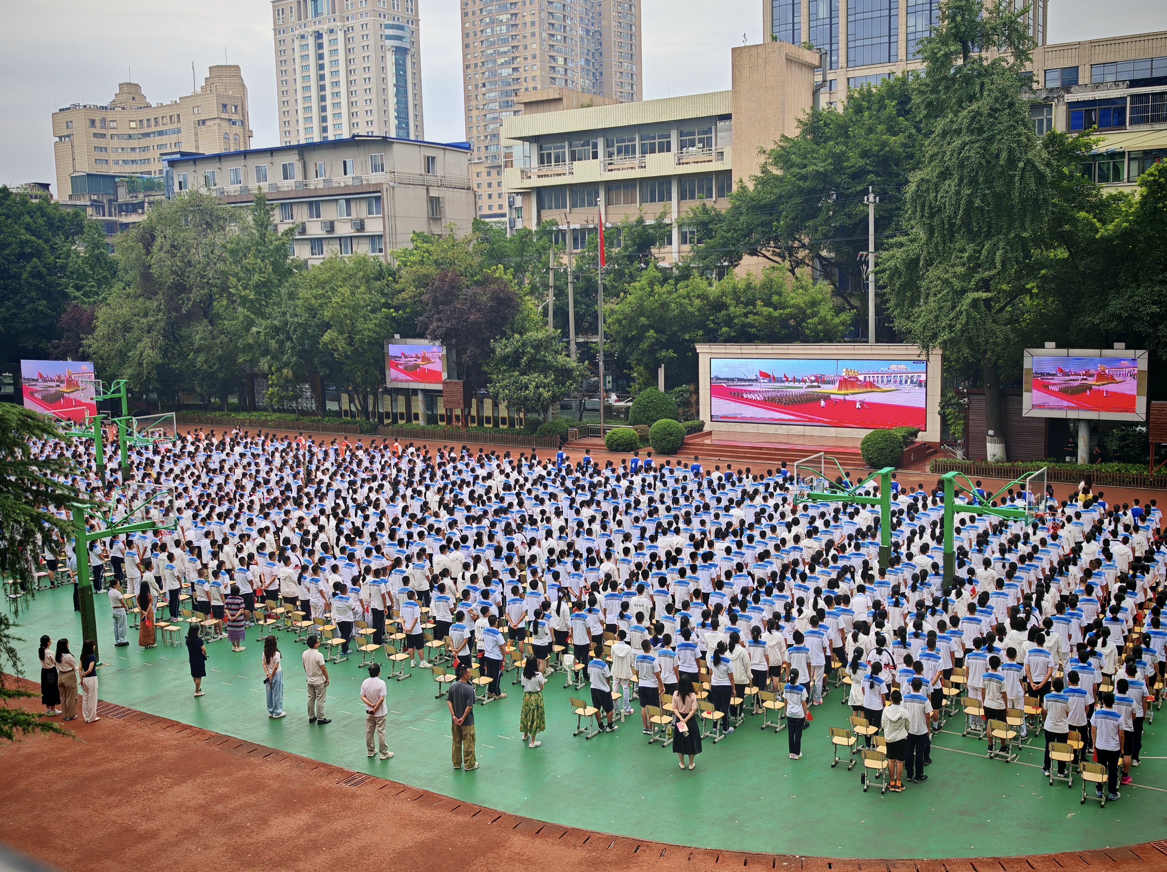 成都市石室联合中学组织全校师生集中观看阅兵仪式