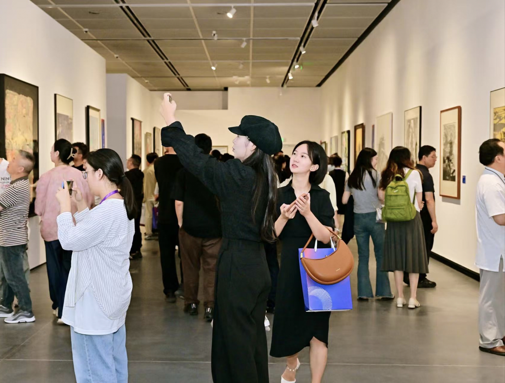 开幕式现场,翰墨飘香,丹青溢彩。中国画墨韵生动、意境清雅;油画语言丰富、情感饱满;雕塑形态各异、空间立体分明;书法篆刻区域,篆、隶、楷、行、草五体兼备,工写交辉、取法雅正……