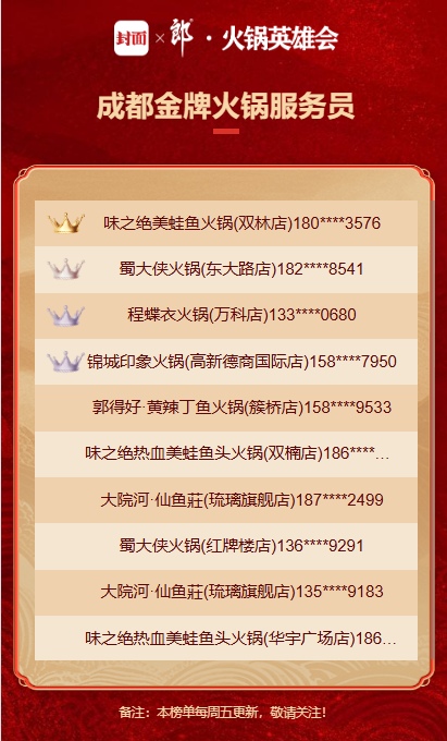 本周成都金牌火锅服务员TOP10