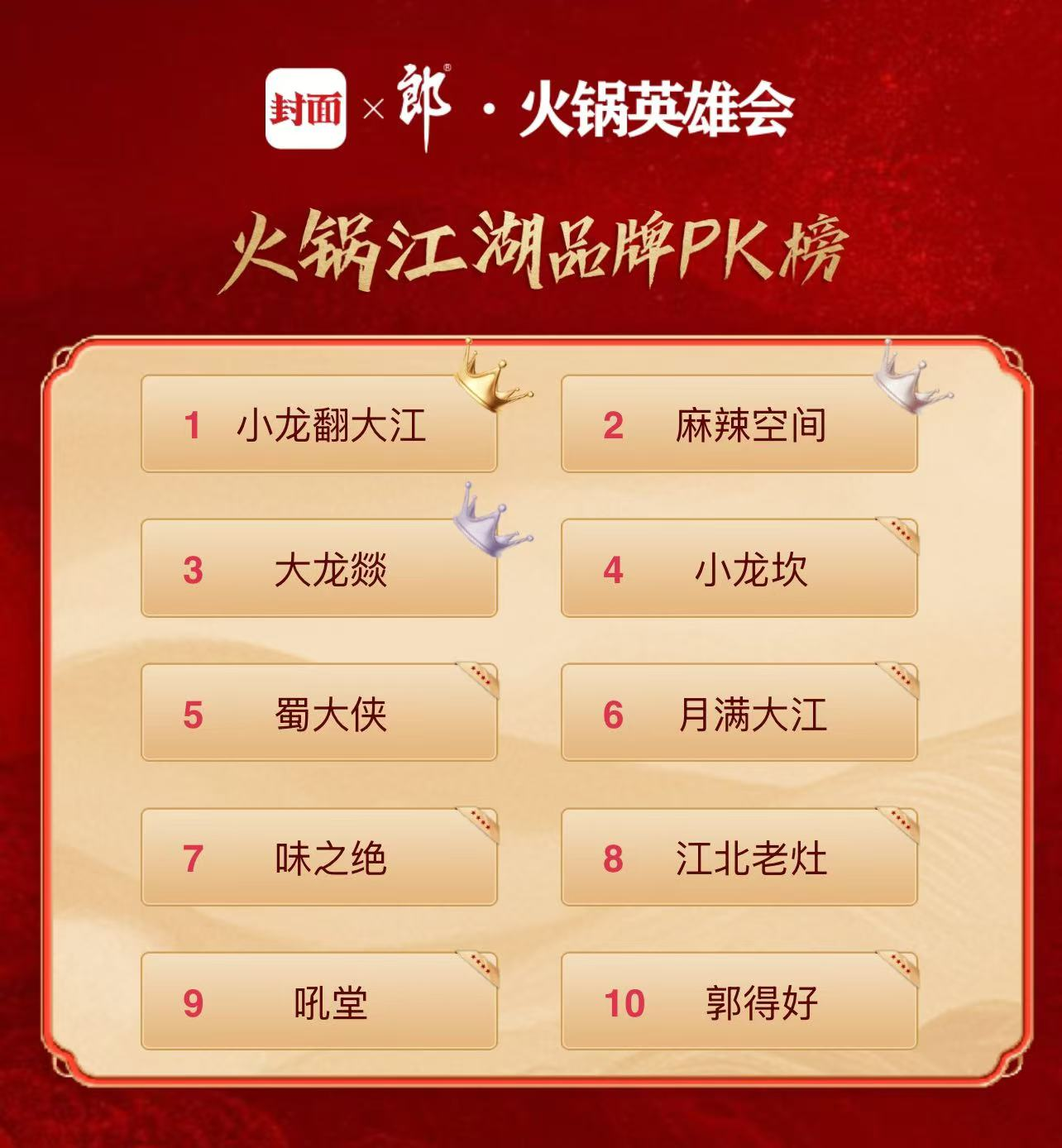 本周火锅江湖品牌PK榜TOP10