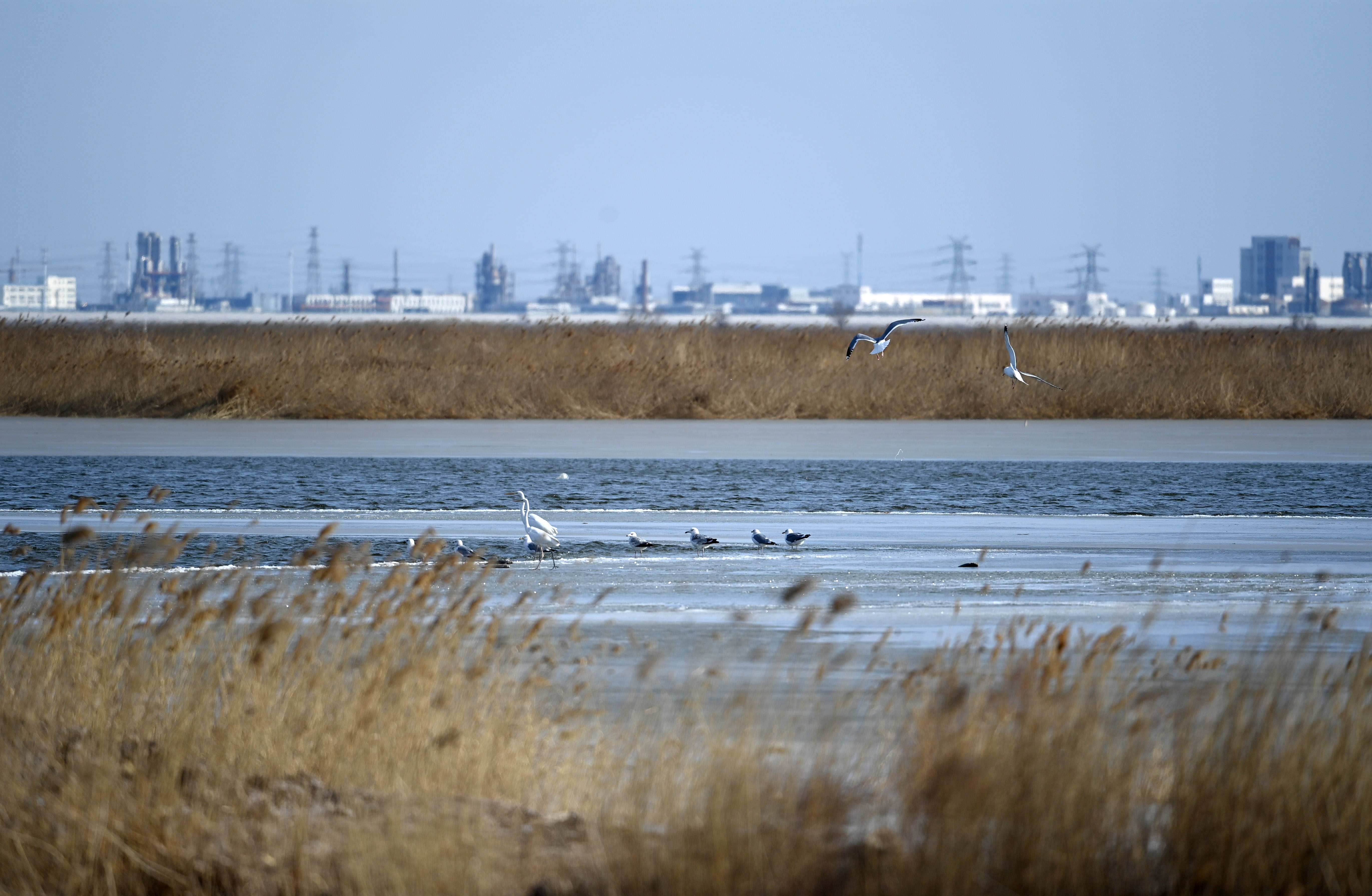 2023年2月1日,候鸟在天津北大港湿地自然保护区栖息。新华社记者赵子硕 摄
