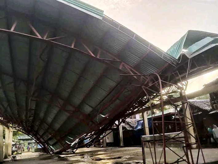 这是12月3日在菲律宾南苏里高省拍摄的在地震中受损的建筑。新华社发