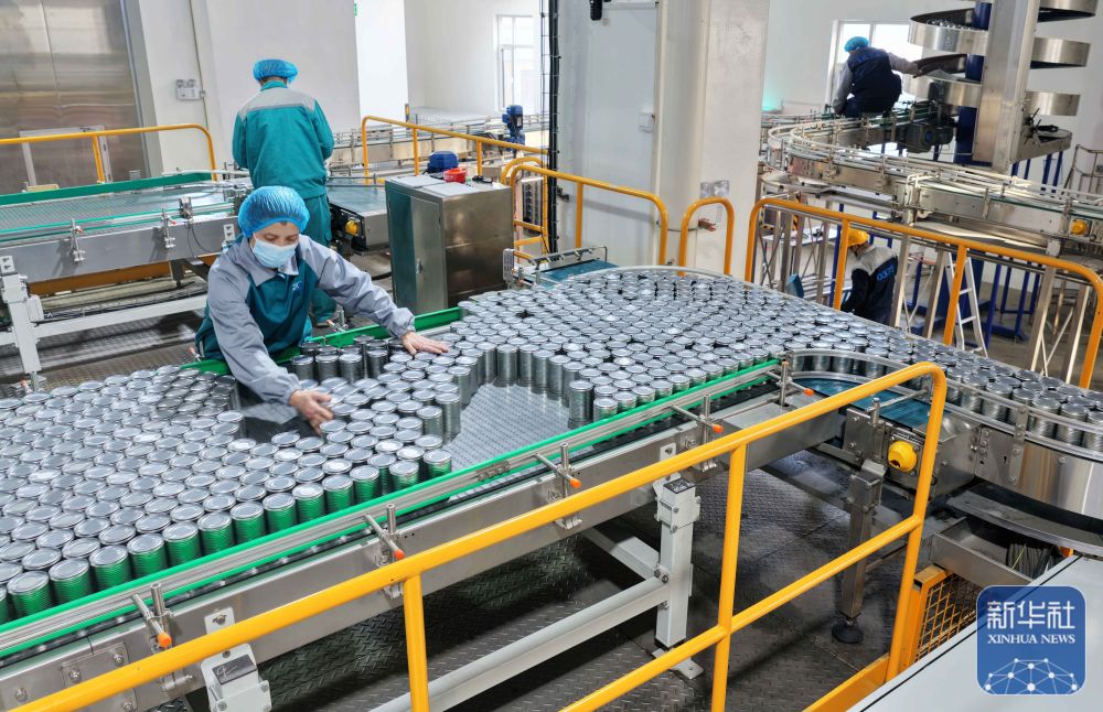 ↑ 12月15日,工人在山东省临沂市沂南县铜井镇宠物食品产业园宠物食品生产线忙碌。新华社发(王彦冰摄)