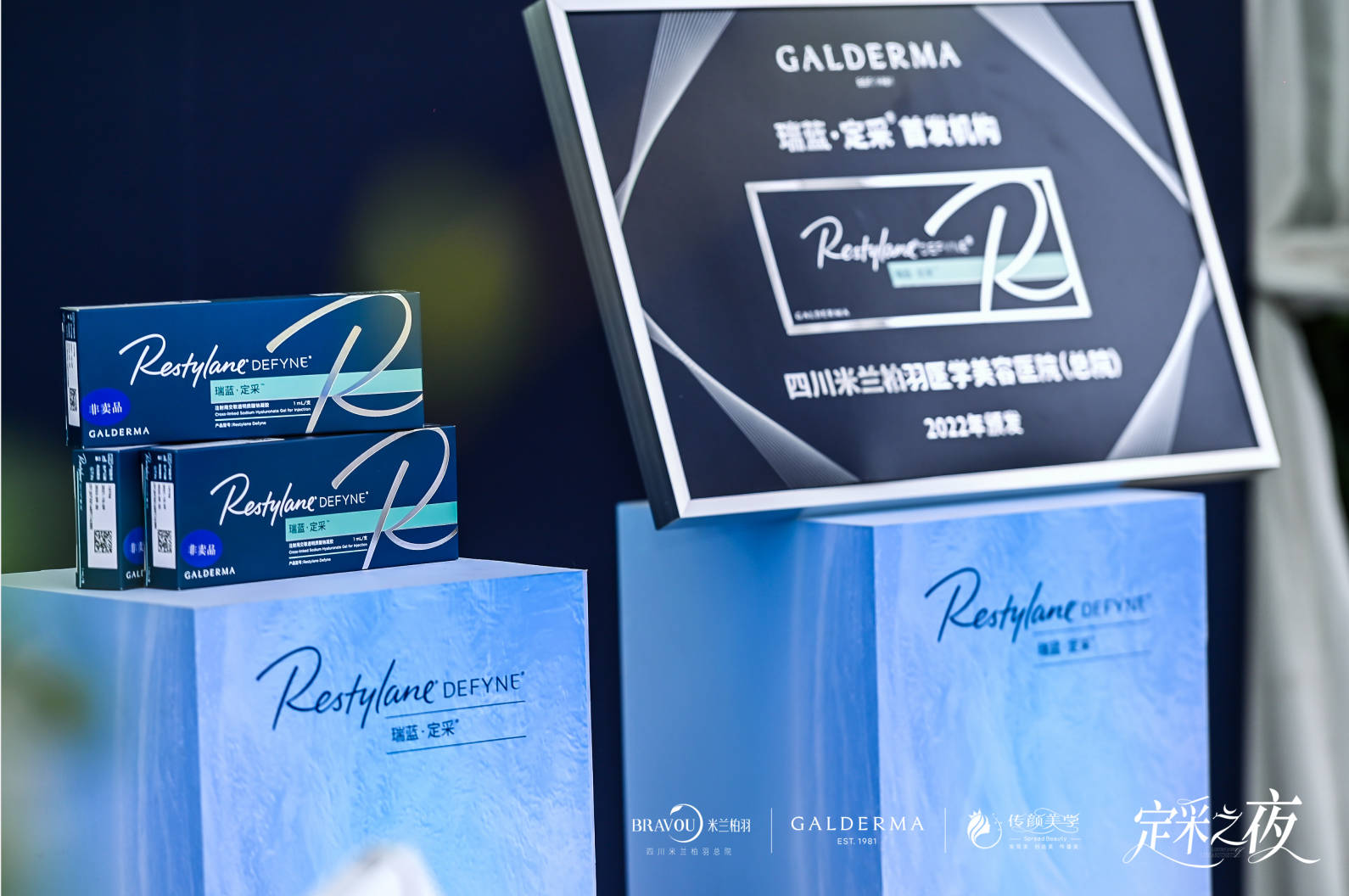 创造每一次美妙,拥抱每一次的进步与革新,在晚宴现场,高德美重磅新品“瑞蓝定采”新品发布。并由高德美北中国销售总监时德辉先生、西区大区经理周小杰先生,四川米兰柏羽医学美容医院总院总经理魏佑珈女士、美容微创中心技术副院长王鹏院长等领导嘉宾共同点亮。米兰柏羽总院早在2022上半年就已经参与到高德美瑞蓝定采医生技术研讨会,并多次分享相关注射技术主题演讲,此次作为“瑞蓝定采”首发合作机构,米兰柏羽总院不仅立产品本身,更是能为广大的中国消费者提供更领先更丰富有品质医美产品,提供更安全、规范、更国际、时尚的医美服务。