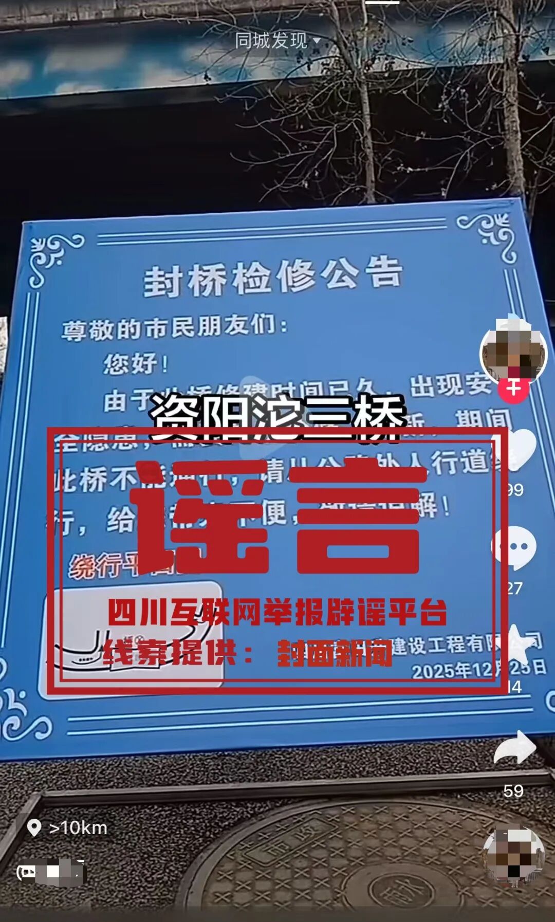 谣言:四川资阳沱三桥要封桥检修?