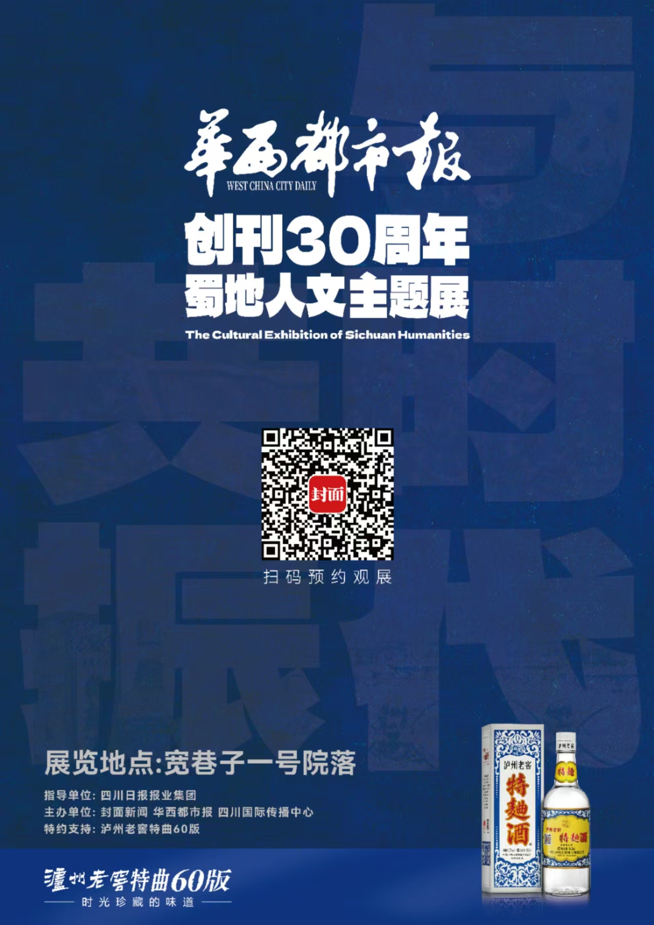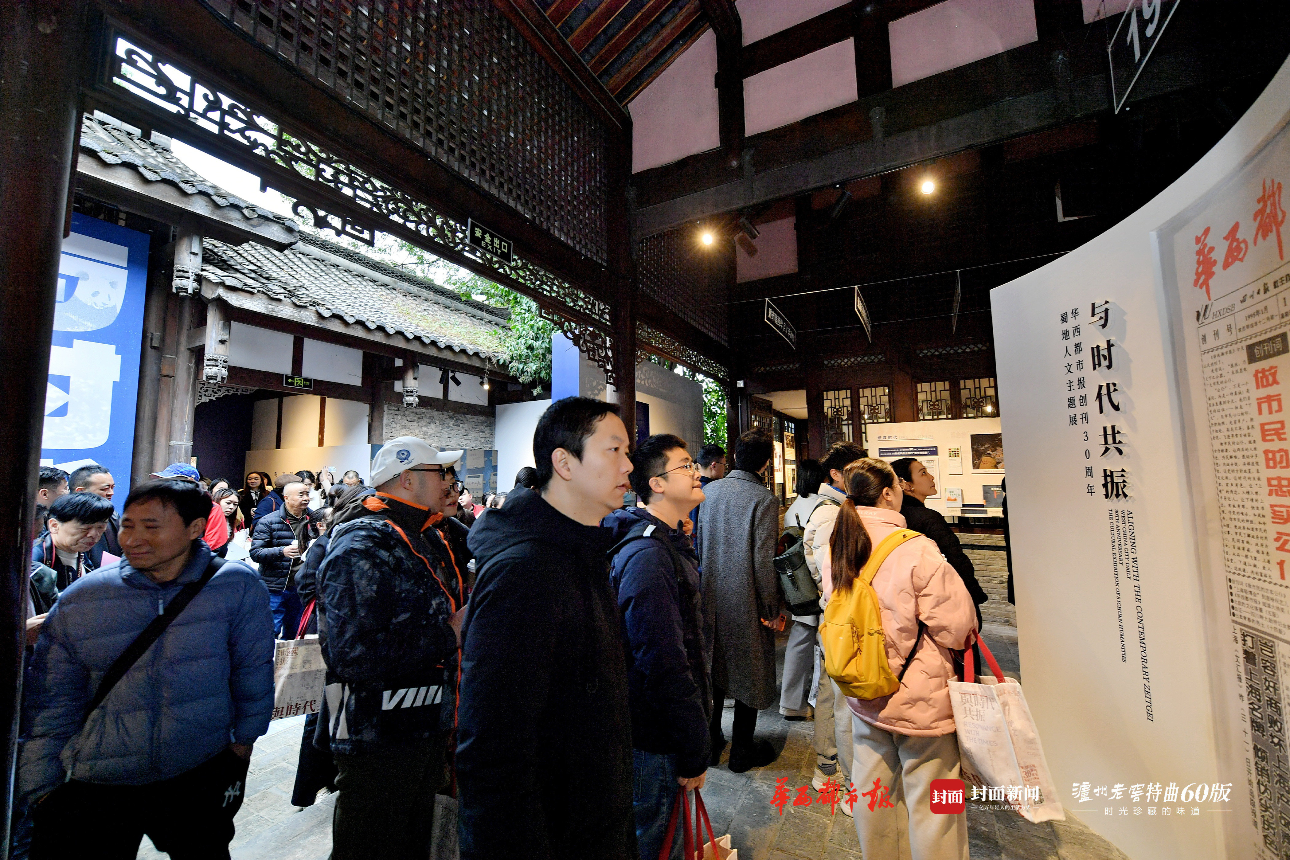 华西都市报创刊30周年之际,由四川日报报业集团指导,封面新闻、华西都市报与四川国际传播中心主办,泸州老窖特曲60版特约支持的“与时代共振——华西都市报创刊30年蜀地人文主题展”正式启航。