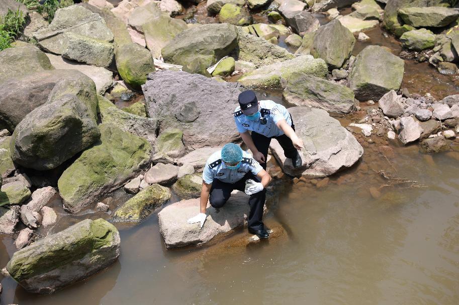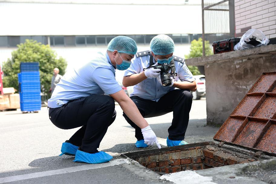 专案组对该企业周边多处下水管进行采样。重庆警方供图