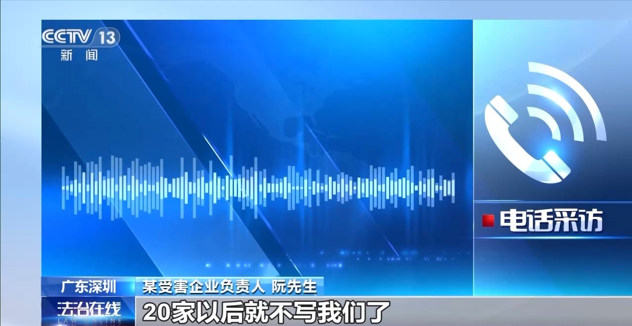 某受害企业负责人 阮先生:我们去找他,当时他们有20家自媒体号,一家要给5000元,20家以后就不写我们了,不给钱还不行。我们当时总共损失是将近20万元,里面还有10万是他找我们要,他去帮我们把这个事情解决了。
