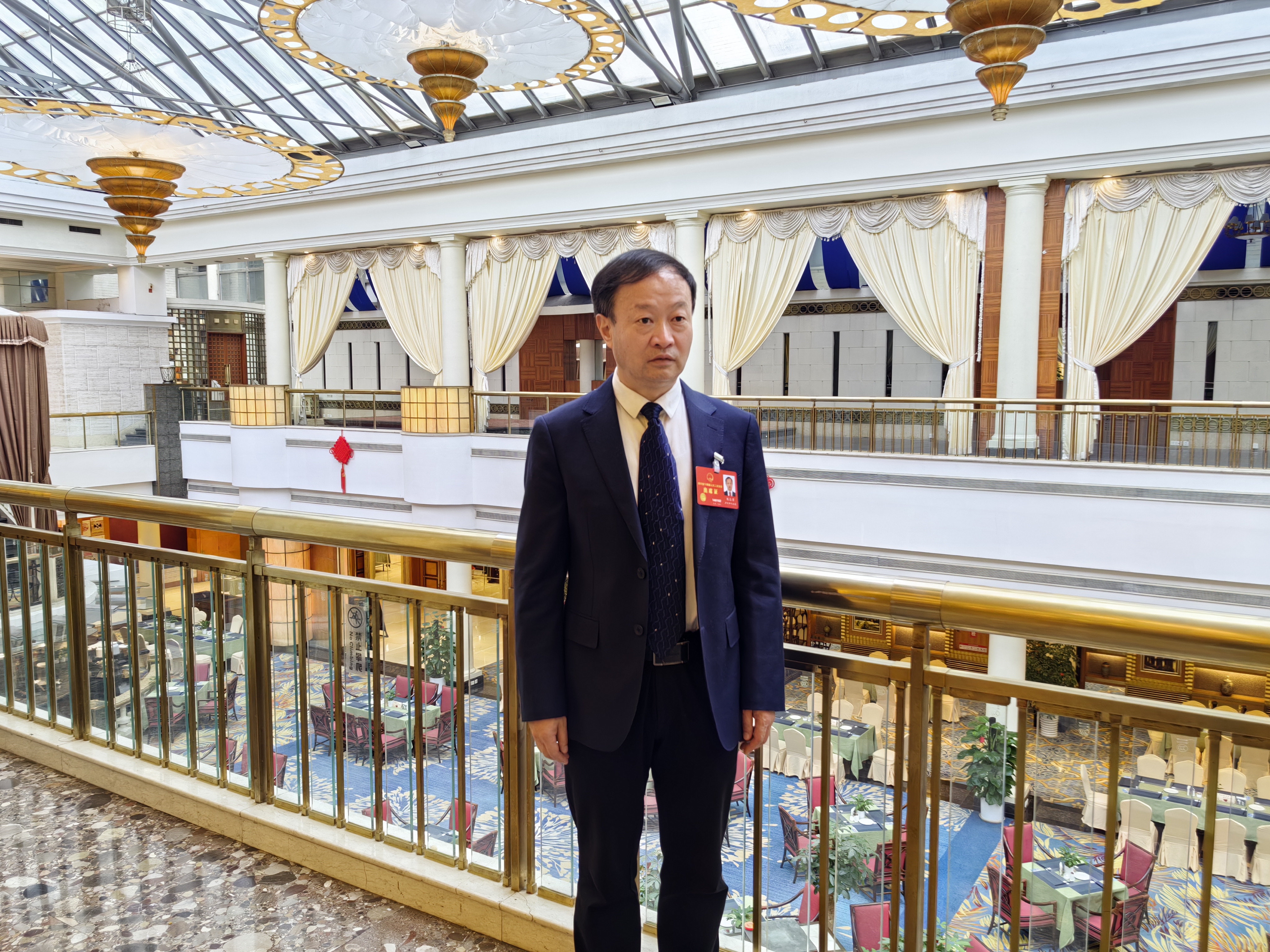 1月22日下午,刘志勇在成都锦江宾馆泸州代表团驻地会议室外,接受了封面新闻等媒体的采访。