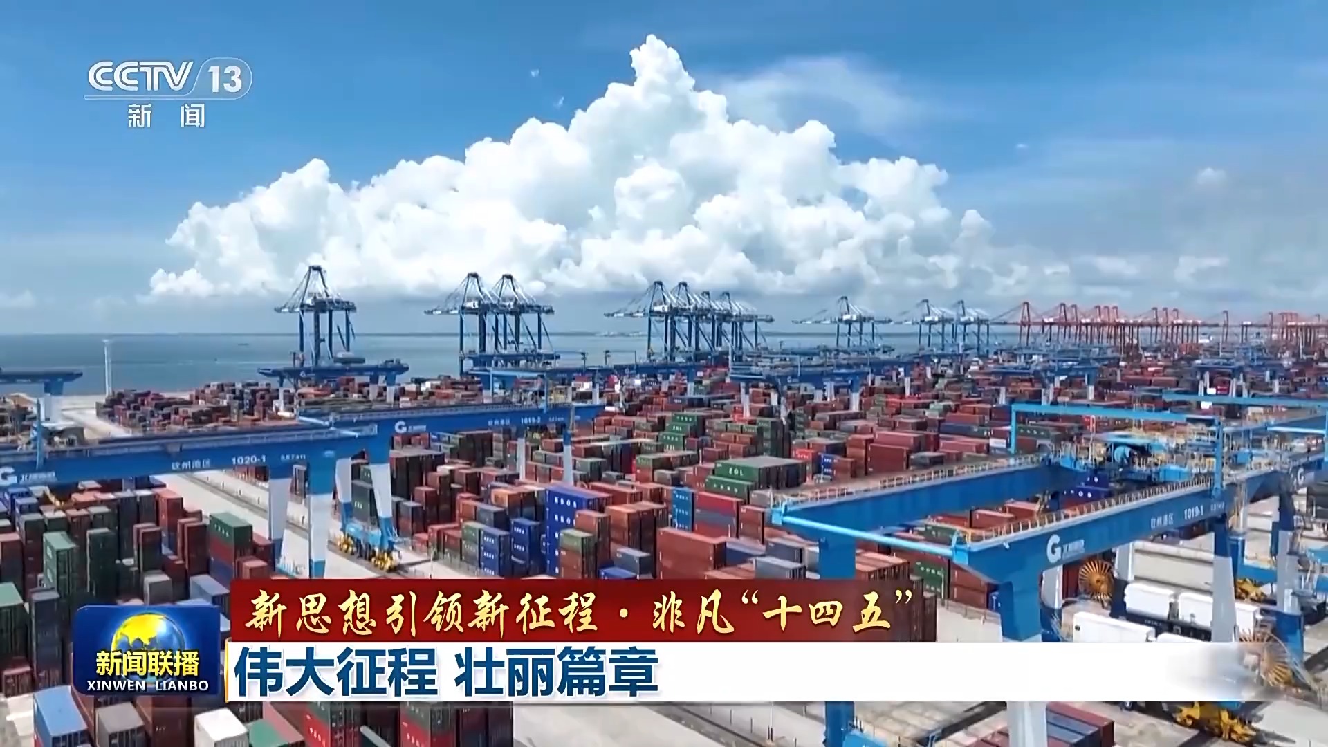 这是欣欣向荣的奋进中国。五年经济增量预计超过35万亿元,高于世界排名第三国家的经济总量。对世界经济增长的贡献率保持在30%左右;货物贸易规模较“十三五”末增长了32.4%,连续8年稳居全球第一。