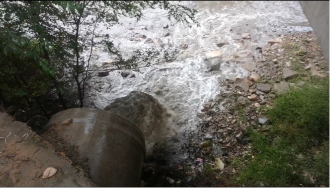 2023年10月11日,督察组暗查发现,西宁市城北区天津桥西北角排口直接向北川河排放污水。图片来源:生态环境部