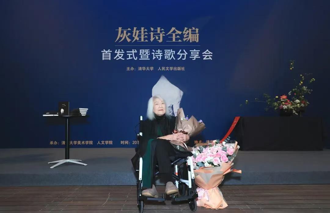 2024年4月28日,由清华大学和人民文学出版社主办的《灰娃诗全编》首发式暨诗歌分享会举行。这本诗集由人民美术出版社原社长、出版人汪家明和艺术家冷冰川共同编选,共辑录诗歌一百多首,较为完整地展现出灰娃热烈而自由的生命与诗歌轨迹。98岁的灰娃坐着轮椅出席。她一身黑衣,白发如雪,洒落肩头,浅浅微笑着,气质出众。汪家明提到,有人说,年轻时写诗,中年写小说,老了适合写散文。这说法搁灰娃身上对不上。“她已耄耋之年,怎么还写诗?而且诗情浓郁、文字求新求奇,意境饱满迷离。我相信年轻的读者们会吃惊,那行云流水、跌宕起伏的诗句,竟比有些现代诗人的作品还要前卫、还要先锋。”