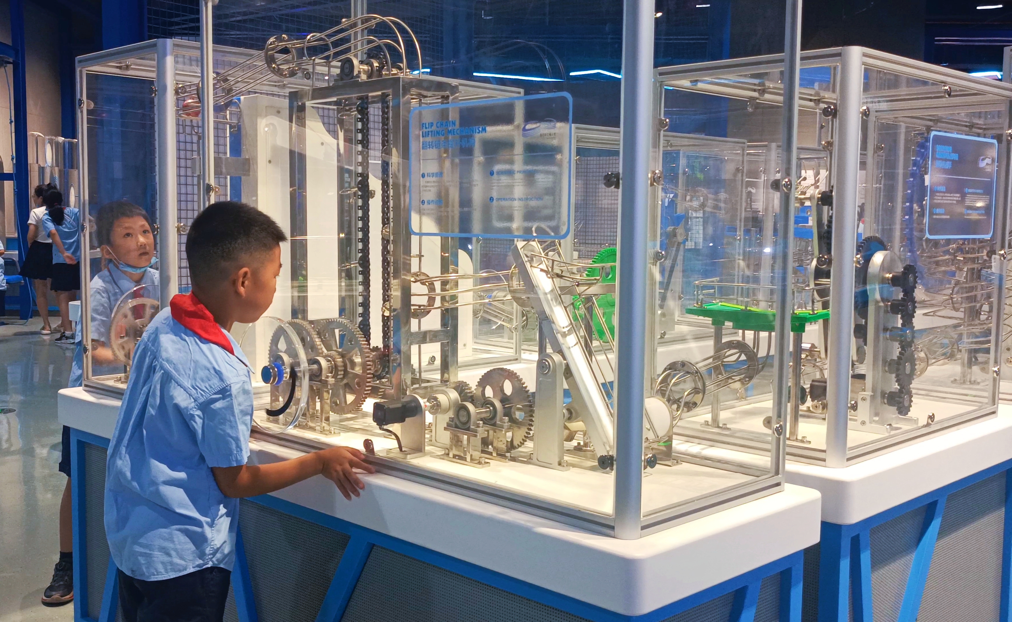 在防灾减灾厅,坐在座椅上,戴上VR眼镜,当工作人员打开“台风模块”“地震模块”,在虚拟世界里,同学们感受到了大自然的威力;进入智慧创想展厅,仿佛进入了机器人的世界,看机器人表演、玩转魔方和猜拳,体验科技的进步与发展;在宇宙奥秘展厅,抬头一看,映入眼帘的是浩瀚宇宙,进入太空飞船,了解内部构造,一个航天世界扑面而来……南充市科技馆值得体验的项目远不止如此。